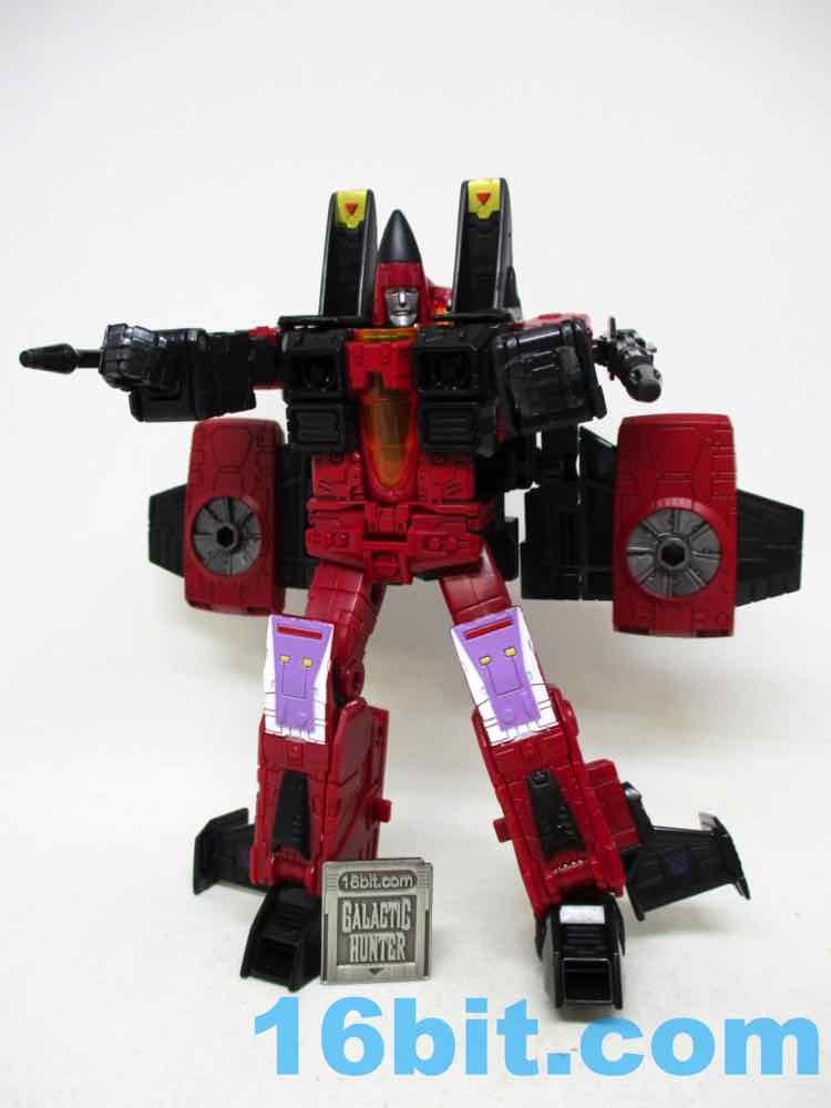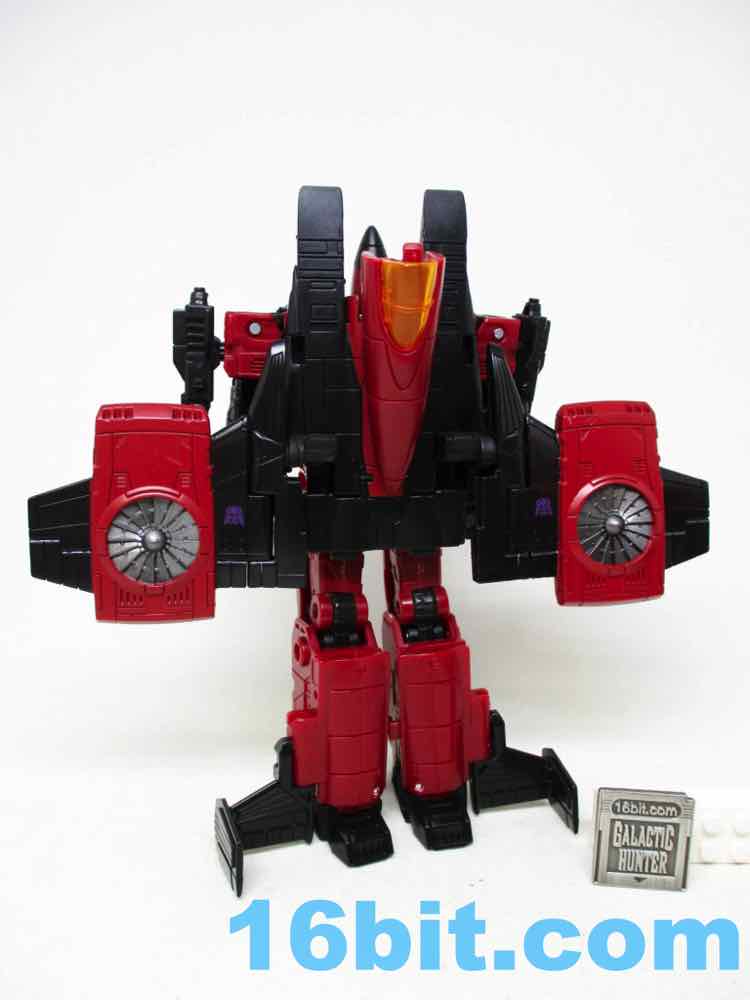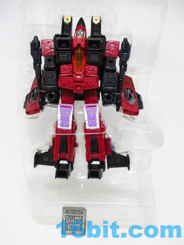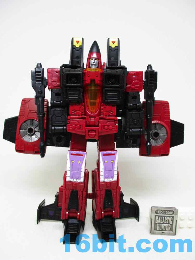 Another paint-by-numbers retool, although I have been made aware that actual paint-by-numbers kits are time-consuming tests of patience of skill, this should scratch your Decepticon thug itch. The robot toy does a pretty good job matching the orange cockpit chest of the original box art, which is generally not how he looks. The ankle wings are there with the unique tips, as are the fan wings hanging off his back. Unlike the original toy, he can only have his cone head mode - which is under his actual nosecone of the jet, which hangs off his back. Articulation is fine as always, but the toy lacks the big Decepticon symbols we all love, and also the air intake coloration or the feet stickers of the original toy. Also, he has Starscream's cannons, opening the door for future accessory pack purchases.