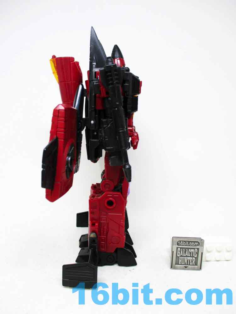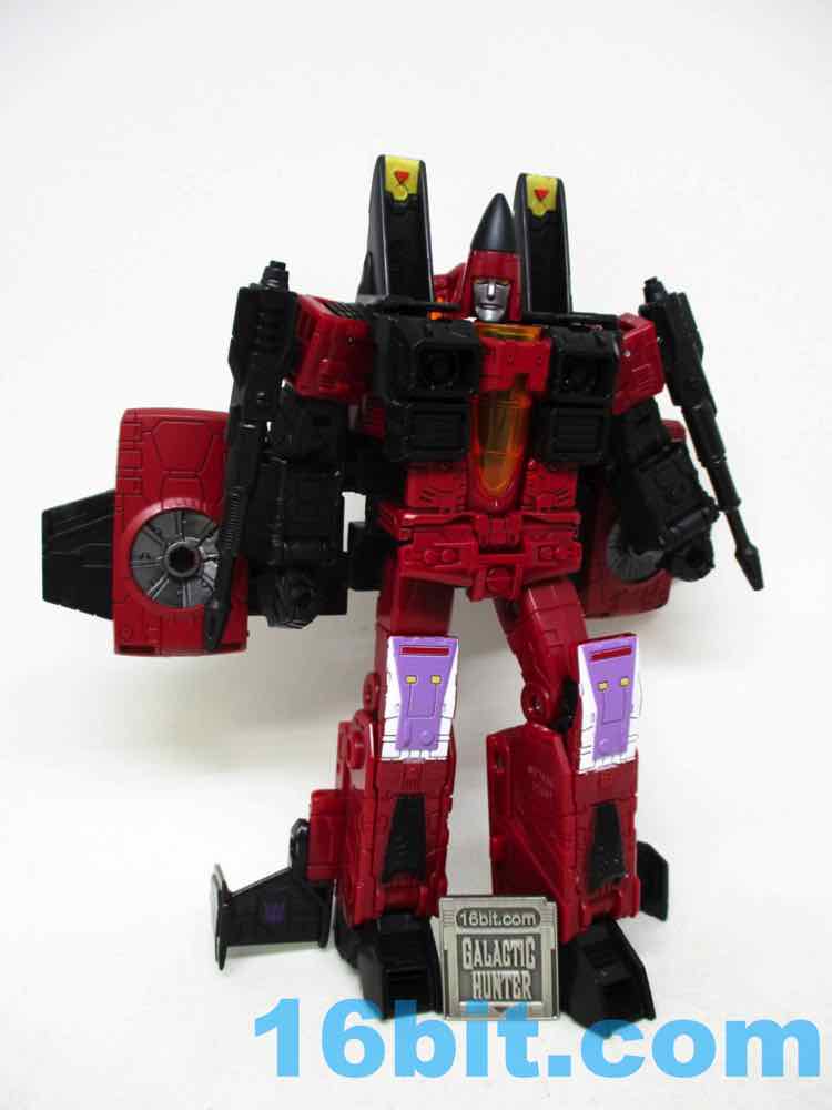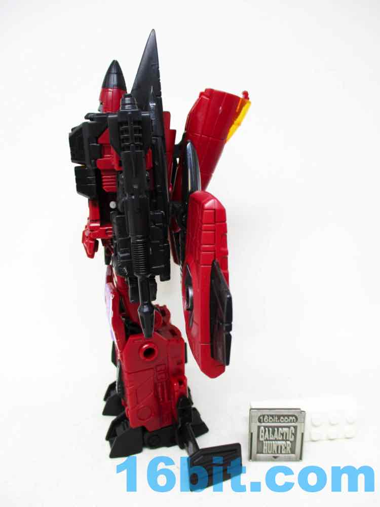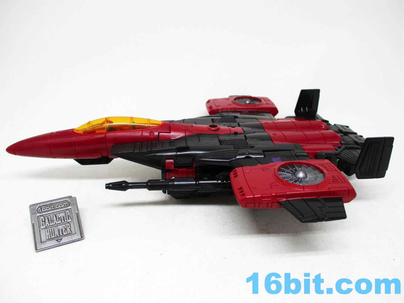Another paint-by-numbers retool, although I have been made aware that actual paint-by-numbers kits are time-consuming tests of patience of skill, this should scratch your Decepticon thug itch. The robot toy does a pretty good job matching the orange cockpit chest of the original box art, which is generally not how he looks. The ankle wings are there with the unique tips, as are the fan wings hanging off his back. Unlike the original toy, he can only have his cone head mode - which is under his actual nosecone of the jet, which hangs off his back. Articulation is fine as always, but the toy lacks the big Decepticon symbols we all love, and also the air intake coloration or the feet stickers of the original toy. Also, he has Starscream's cannons, opening the door for future accessory pack purchases.