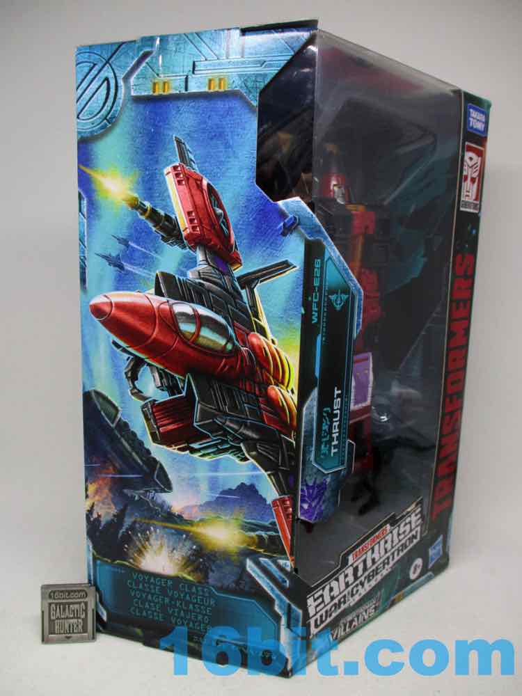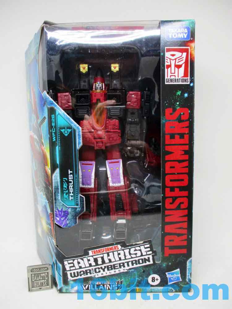 Largely shipping late in December or early January as the caboose of the Transformers War for Cybertron Earthrise line, Thrust - who I remember because he is colored like rust - seems to be a pastiche of Thrust's many toys. This is a nice way of saying it's not a perfect translation of the cartoon, comic, toy, or other designs from over the years - it can disappoint you in many ways, yet also completely meets expectations. If you bought the other six seekers which had shipped prior to this one, there's nothing new about the transformation but you will note new wing tooling to match the original Thrust designs.
