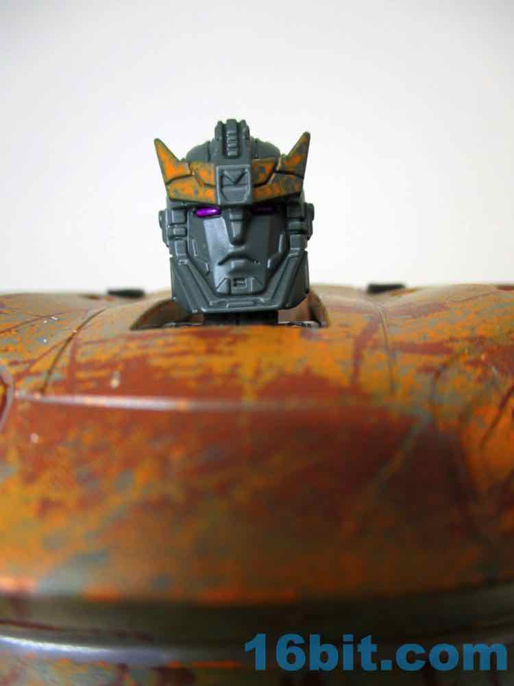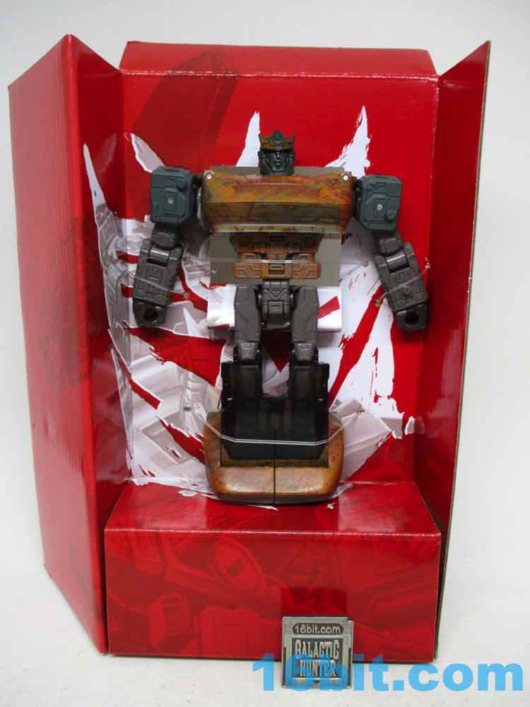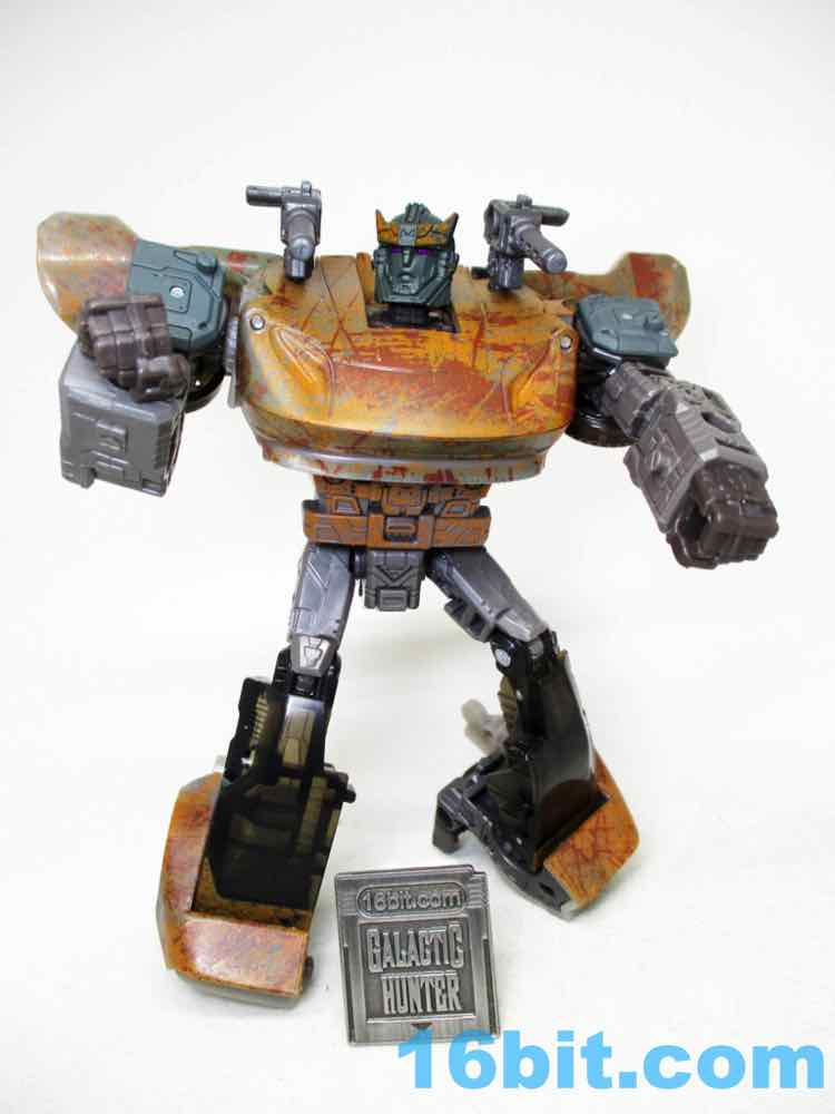 The grey robot parts are boring grey plastic and the car parts may well be the most ornate paint on any Autobot or Decepticon this year. While the toy has no faction logos, the box says he's a purple face and the end results are pretty great. It's like an expensive custom or designer toy, but it's cheap and at Walmart. I'd be eager to see what else Hasbro may come up with - normally repaints make me cranky, but this is new enough. And an army builder. Also a good mold. If you see it, and are amused at having something that looks like it's been rusting in your back yard, run to the register with it when you find one.