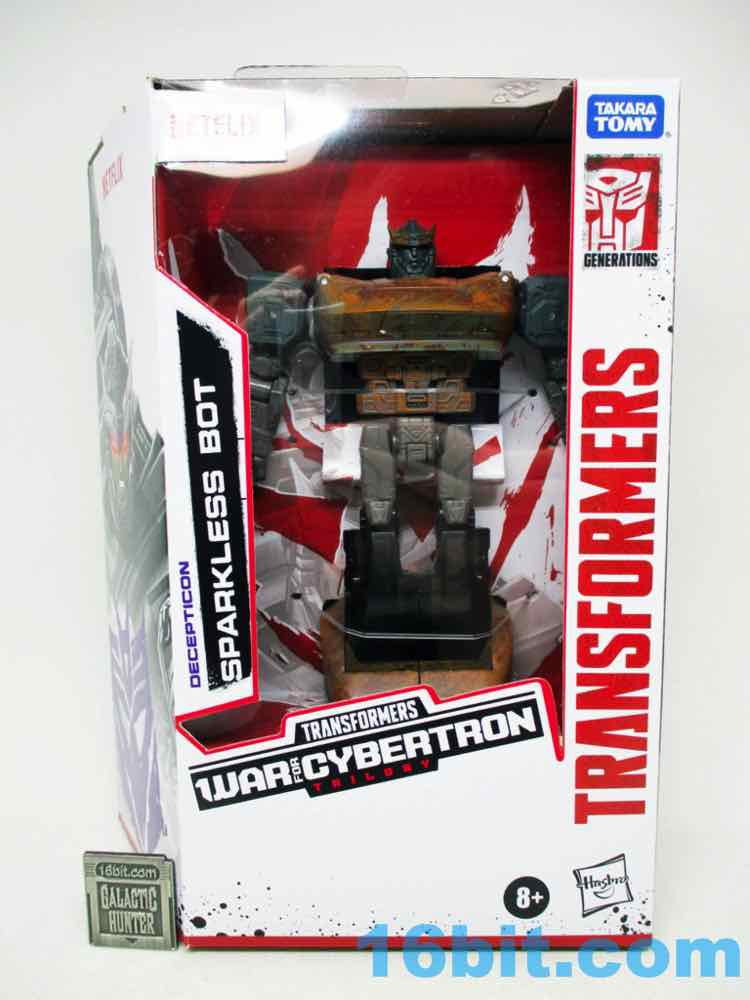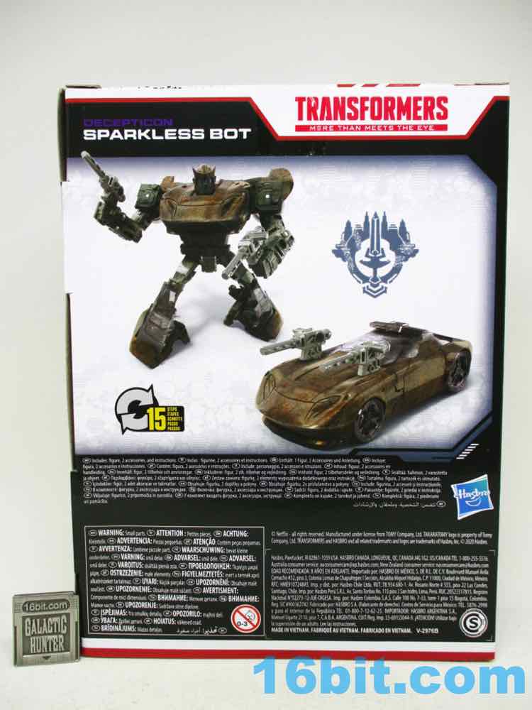 While boxed as a Decepticon, Sparkless Bot appeared on leaked lists as "Barricade" - which seems accurate. He's got the unique helmet head and the twin blasters for the hood, so this is totally the same configuration as Barricade [FOTD #2,228] from 2020. Since Barricade was very much alive in the Netflix cartoon, this is clearly someone else who is very dead. The character had little to do on the show, but it's an awesome toy. I assume collectors will go nuts for this one over time, but in the short term kids will be disappointed that Hasbro is trying to sell them what amounts to a gorgeous designer toy for $18.