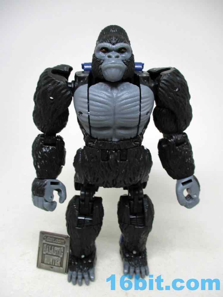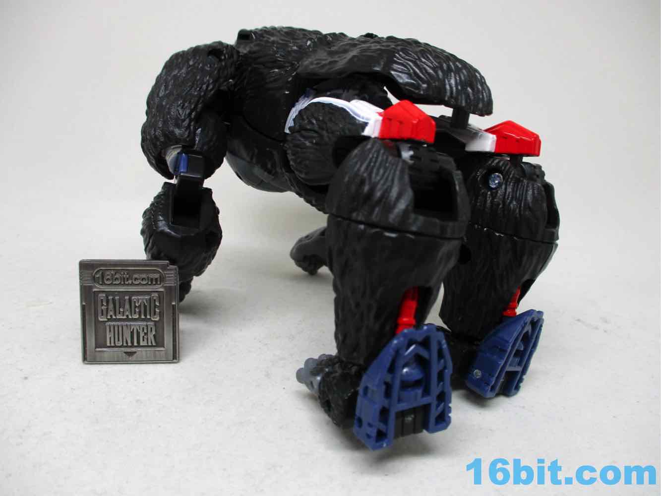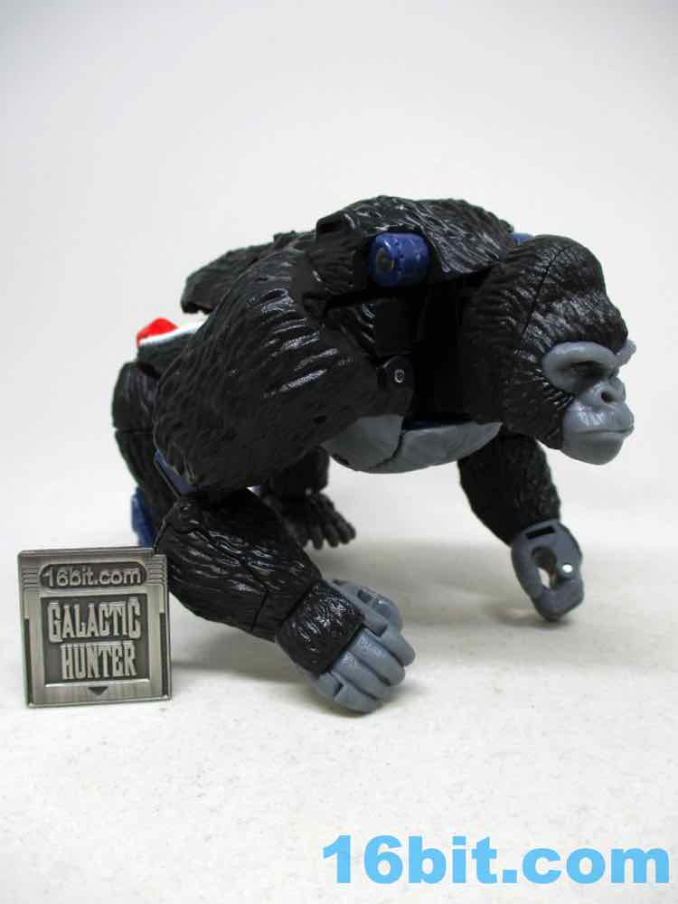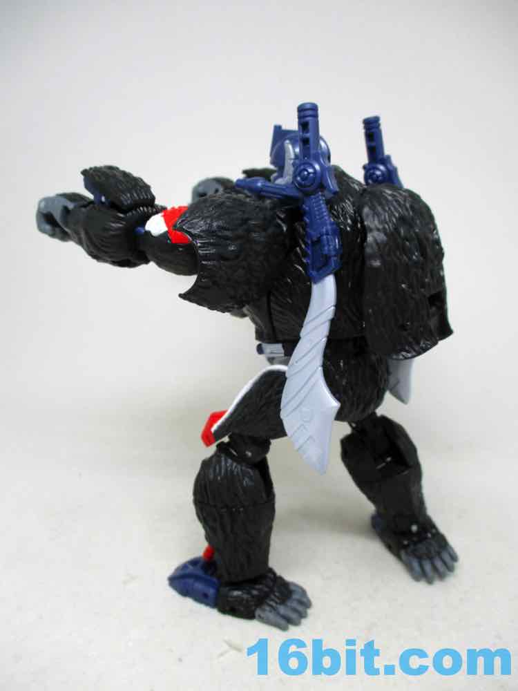 The gorilla has slightly different configurations for standing on all fours or on two legs - he looks better on all fours. The neck can look up and down a bit, plus it swivels nicely. It doesn't really look like the old toy, the newer toys, or the TV show - it's its own thing. Much of the robot kibble is hidden depending on how you look at it, much like Cheetor. It's all about perspective. The toy is largely black with some grey bits exposed, and much like the robot's chest, the beast face is pretty good - lots of color and expressive. I wouldn't say it's realistic, but it's certainly nicely done.