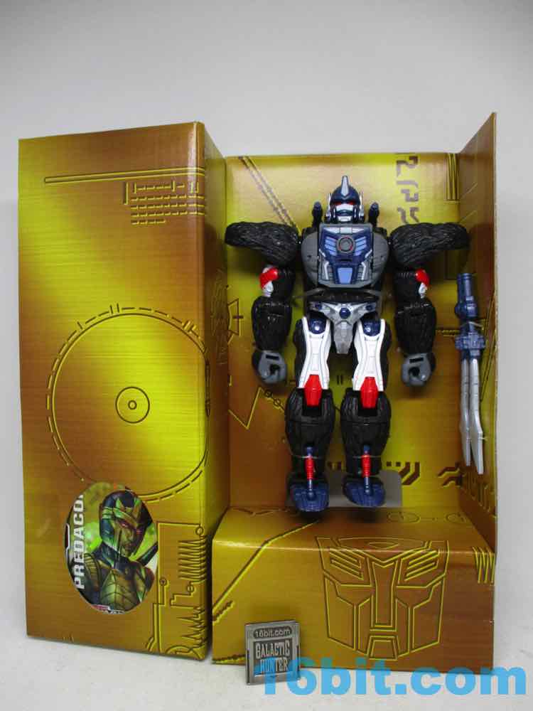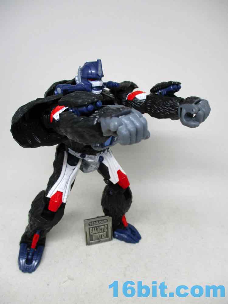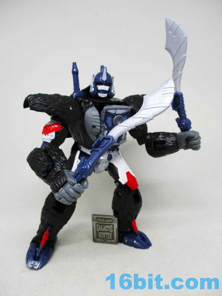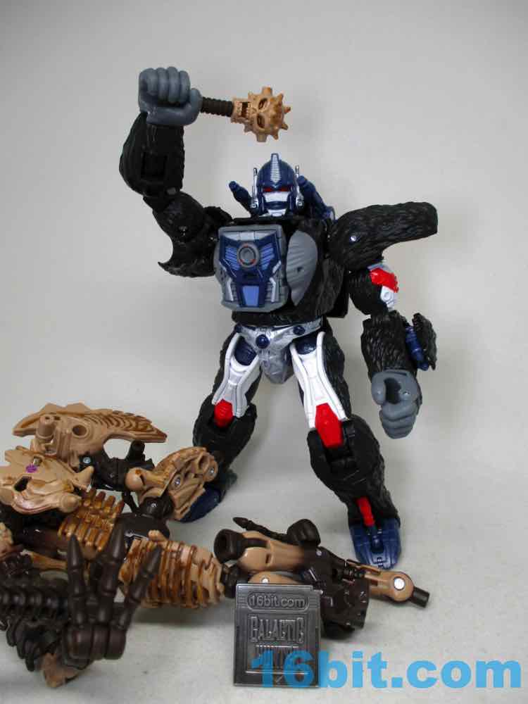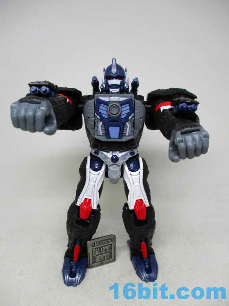 The gorilla has slightly different configurations for standing on all fours or on two legs - he looks better on all fours. The neck can look up and down a bit, plus it swivels nicely. It doesn't really look like the old toy, the newer toys, or the TV show - it's its own thing. Much of the robot kibble is hidden depending on how you look at it, much like Cheetor. It's all about perspective. The toy is largely black with some grey bits exposed, and much like the robot's chest, the beast face is pretty good - lots of color and expressive. I wouldn't say it's realistic, but it's certainly nicely done.