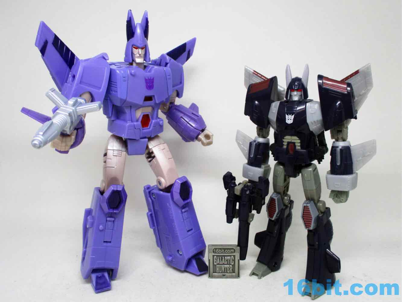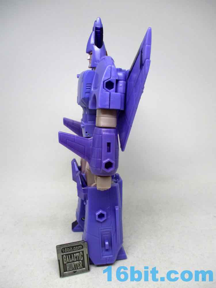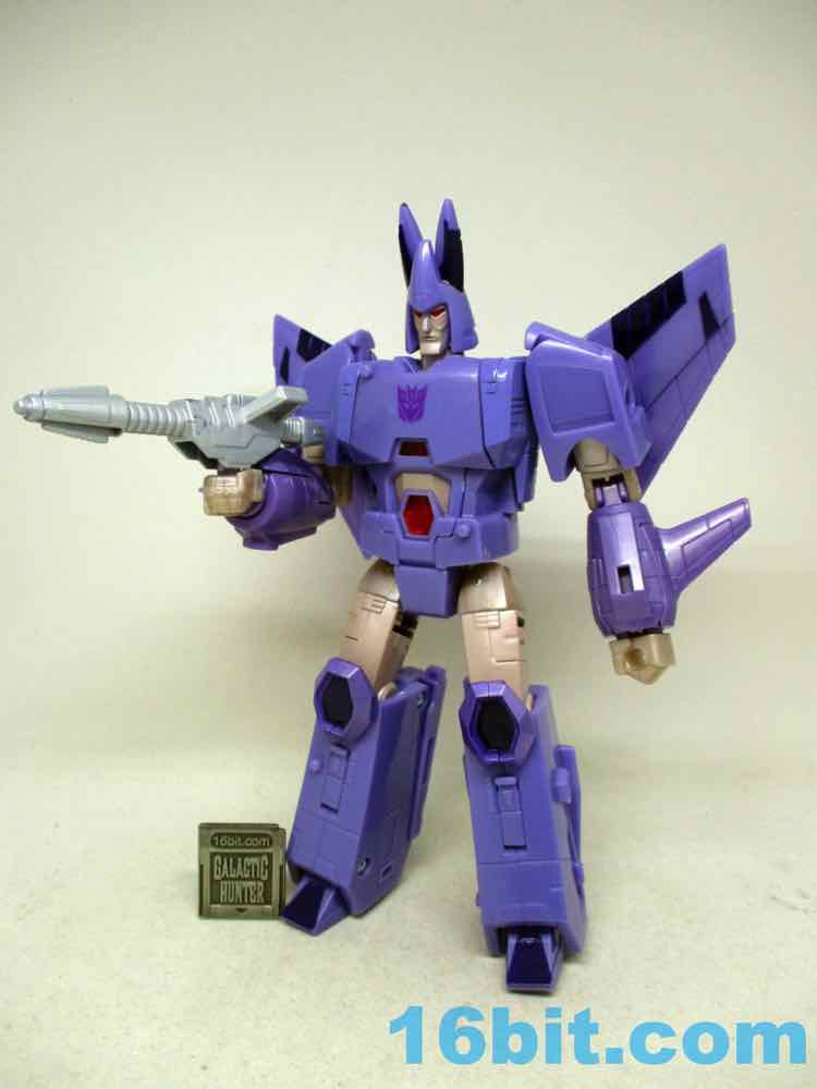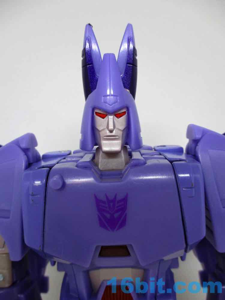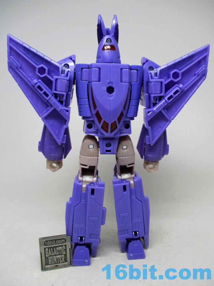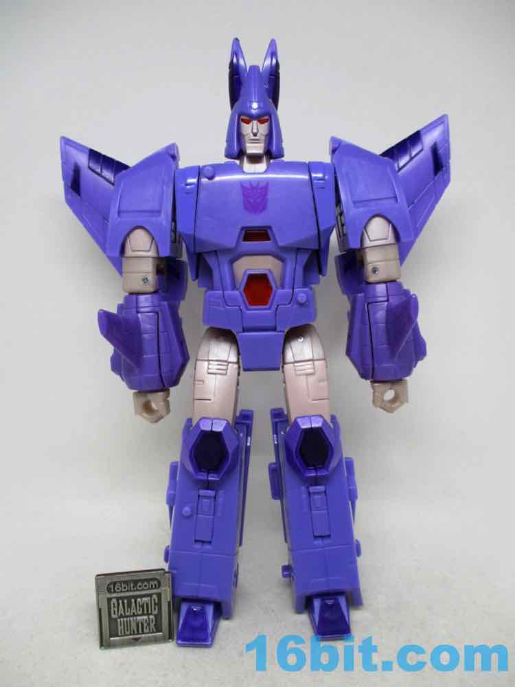 While Optimus Primal packed a lot into a small toy, Cyclonus is refreshingly by-the-book - just like the cartoon character. Unlike previous releases, he has no Targetmaster buddy. There's no combiner feature. It's just Cylonus, decorated to look more or less like TV Cyclonus, with a transformation that's so intuitive I didn't need to consult the instructions. He has marvelous neck articulation, great eye-port light-up red eyes, exceptional articulation, and he's big. Is he perfect? No - the thighs are painted silver and are prone to scraping as part of how the transformation works.