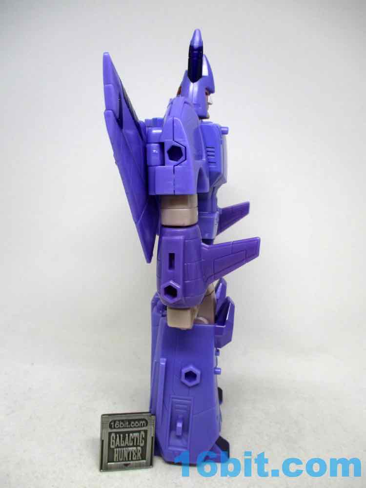 Colors are largely inspired by the cartoon, as the figure lacks the big stickers and darker purple plastic. It's lighter and the design is quite good - the wings are on the arms, so movement isn't restricted. The head can swivel and pivot up and down, too. I would have loved some extra gear (and would happily have paid for it,) but the robot mode is good by itself. Cyclonus is largely more fun than the other War for Cybertron Voyagers, and I'd say he also feels better - ignoring the pricing - than the bulk of the Leader-class toys in Earthrise and Siege. You may be happy with the Cyclonus figures you've already got, but this one is better. It just is. It can't combine, but it's just very much the best retro Cyclonus so far.