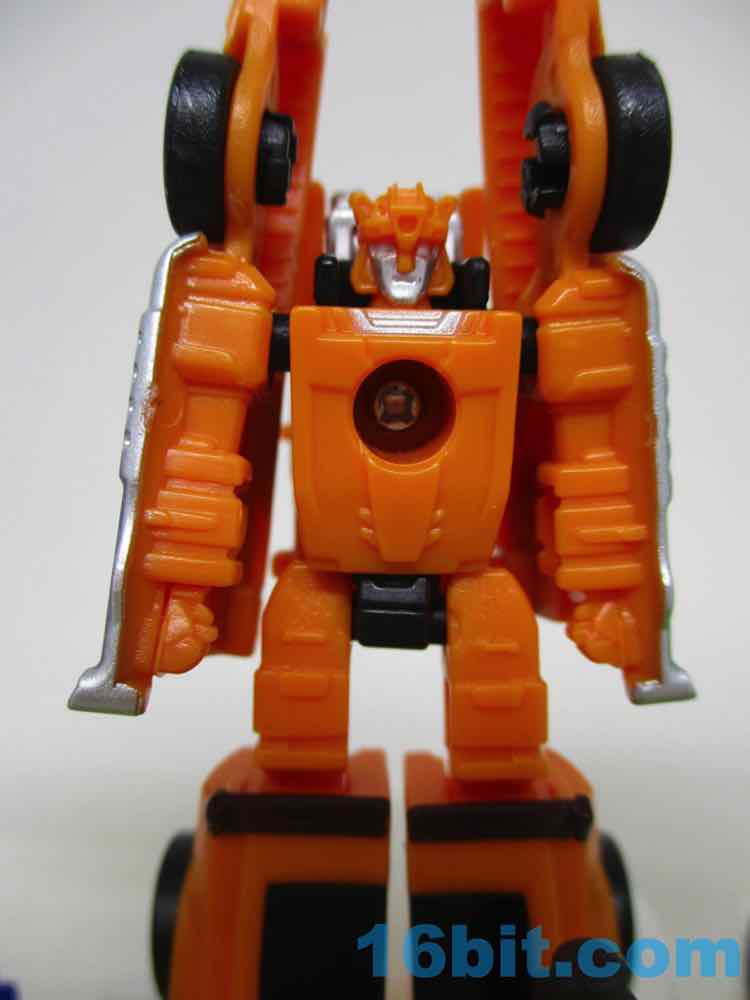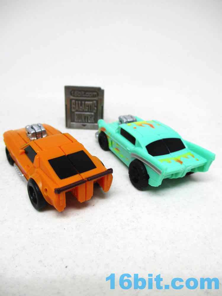 Stingracer has more paint than he needs in car mode, and a perfectly nice robot mode. Much like Windstorm, there's no G1 antecedent so these are original characters and as such, are perfect. There's no expectations to dash - it's just a very nice 1970sy orange hot rod with a big silver engine and some silver and black detailing. They also painted some red stripes on the sides, which were an absolute waste of effort against the orange plastic in most lighting. I was surprised to see them. It's a nice tribute to another old toy but it would've been nice if those stripes were more prominent. I still like it. I assume you will too, if you're a fellow fanatic about American toys of the 1980s.