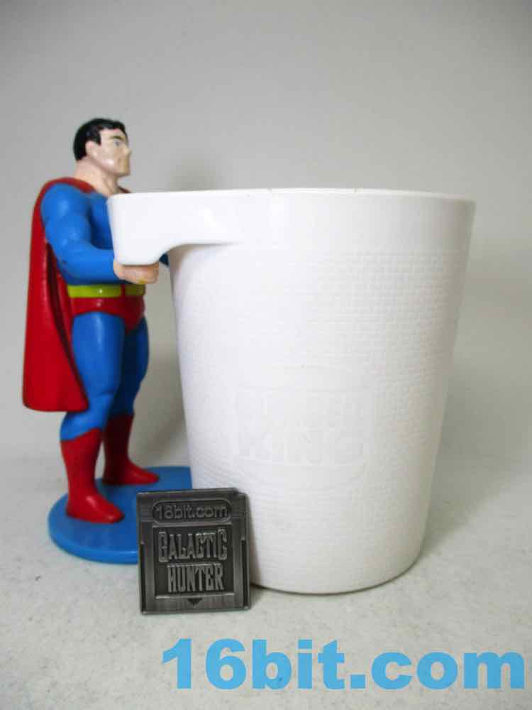 It doesn't do much, but it's a clever and memorable design. I'm kind of surprised more figures weren't made in this style - the figure had holes in his fists and stand which could connect to a white plastic cup, which was intended to house your fast food cup. The cup itself is nicely textured and has a subtle "Burger King" logo on it, but is generally unpainted. If you saw a picture online, it would be understandable that you thought it was a complete blank slate.