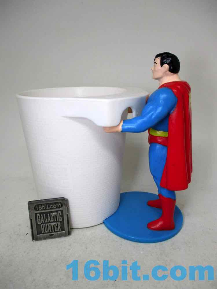 I didn't have any of Kenner's Super Powers figures as a kid, but I was able to get this Superman Cup Holder, which was a fixture on my childhood desk and toy box. You could put things in the cup, and you could pretend the removable figure was the action figure you actually wanted. Somehow this has travelled with me since I got it nearly 33 years ago, and was my only Superman toy as a kid. And by the time you read this, it's probably on the way out. As you may have guessed by how many editions have ran for Figure of the Day between 16bit.com and Galactic Hunter, I got a lot of toys, and as I get older I want the space. (And room for other toys.) (But more accurately, a room in the basement with video games set up.)