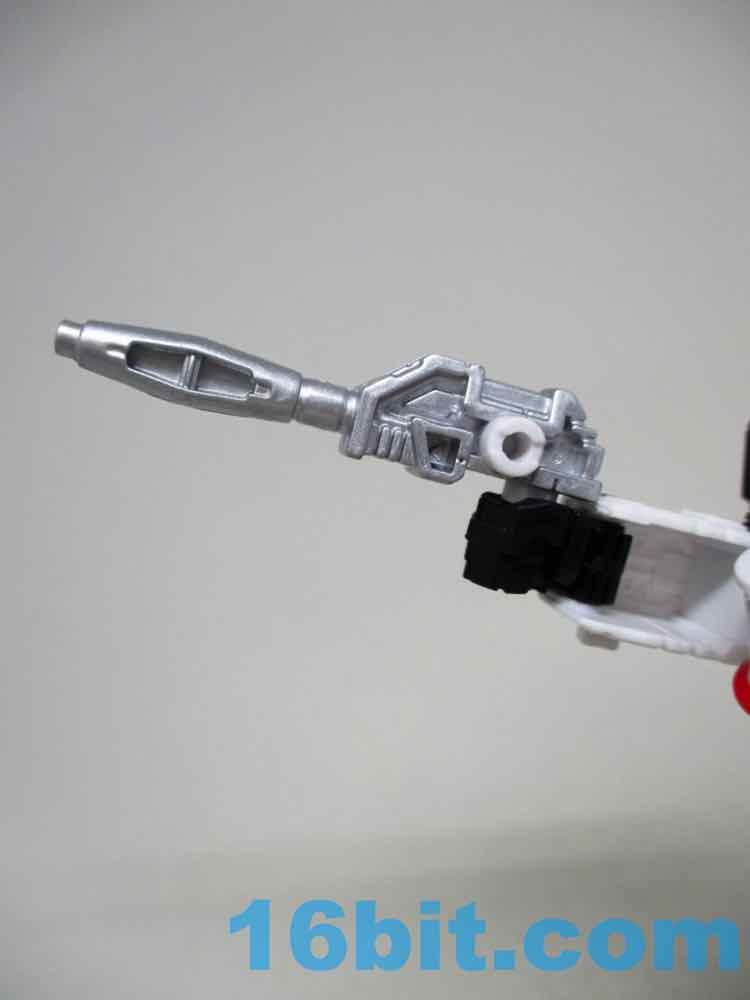 I don't understand why he only has one accessory, or why it has white 5mm pegs on the sides. The blaster was designed to mount on the roof, so there's no reason to have it mounted sideways. It looks great and has a 3mm tip, so if you want to display it with C.O.M.B.A.T. effects you can. I do not recommend it - silver plastic sometimes reacts badly to other plastics, and there have already been issues with paint and those gummy blast nubbins.