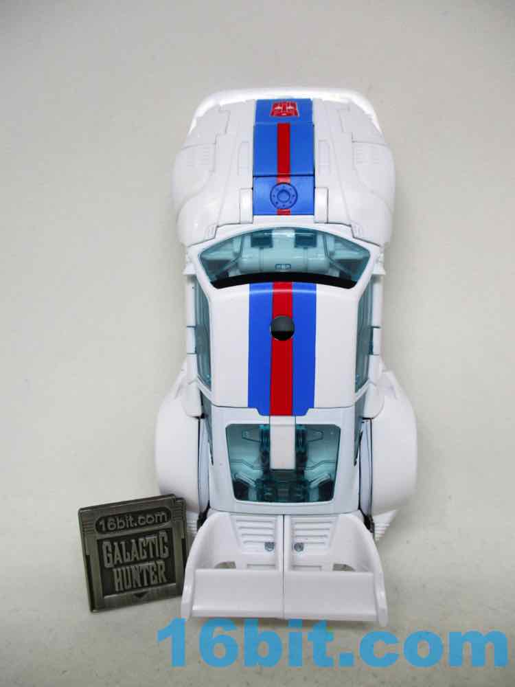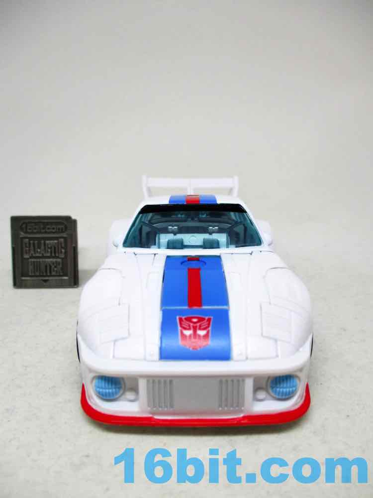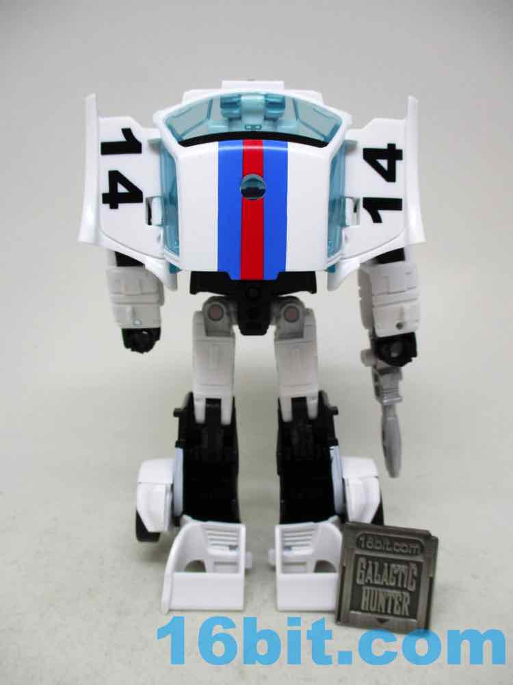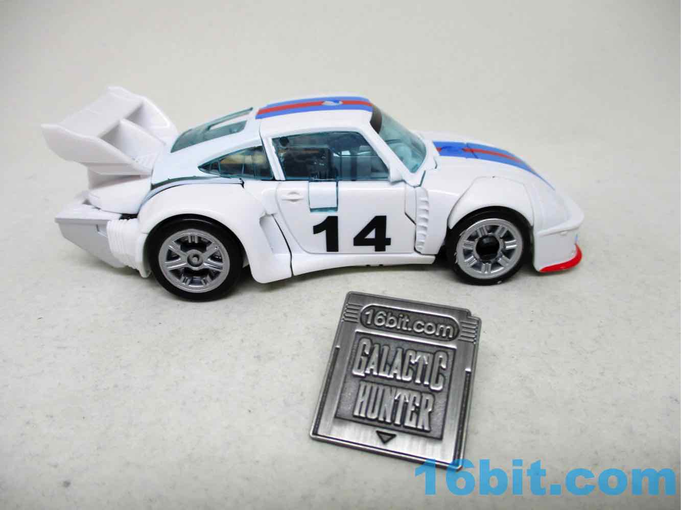 The car lacks all of the rally marks from the original toy's stickers, so ToyHax and the like will have a field day with this one. The original rally number "4" is now "14," a nod to the numbering of his original Diaclone toy. You could also scrape off the "1" if it really bugs you. The wheels have nice silver caps, but the car itself just feels so plain compared to other releases - it's accurate to the cartoon, though. Hasbro did an excellent job, even including clear windows.
