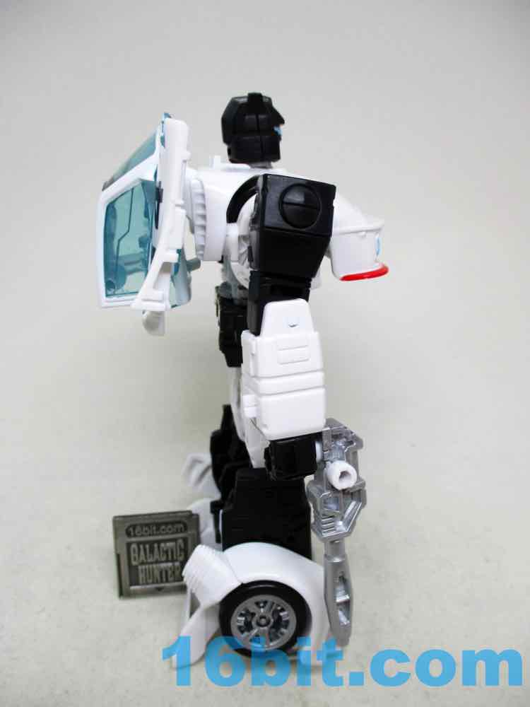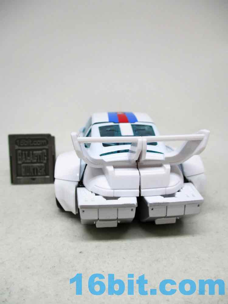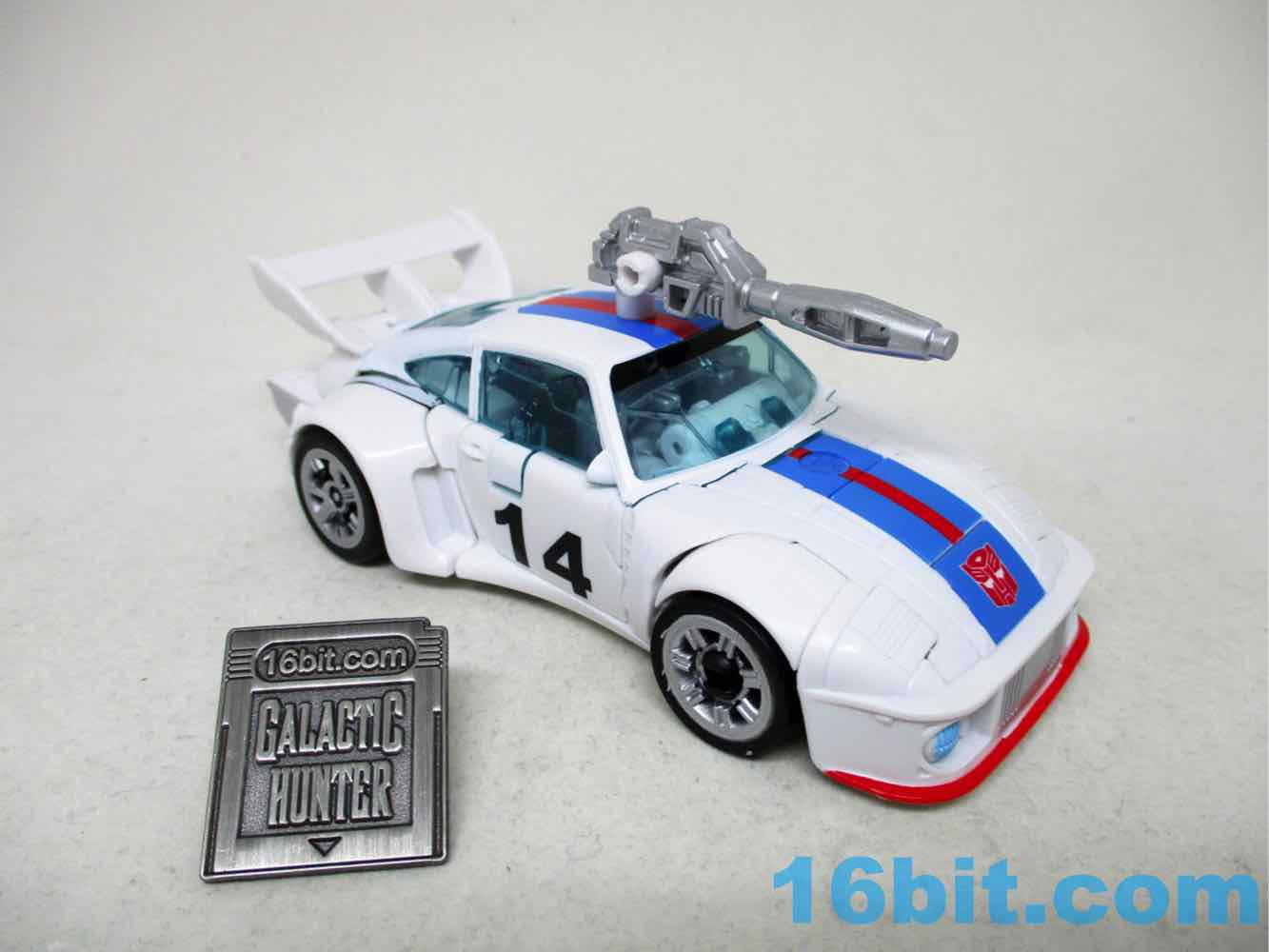 I didn't have a Jazz as a kid, but if I had this 5 1/4-inch robot in 1984 it's entirely possible I would never have had a reason to come back to Transformers as an adult. This is the cartoon character as an action figure that just happens to be able to turn into a pretty good not-quite-Porsche 935 Turbo. I'm not a car guy so I can't look at it and tell you why it's different enough to not be a licensed vehicle, but I see nothing on the box so I assume it's not. The figure does a good job bringing many - but not all - cues from the toy since it's the cartoon model. The only place I felt came up short was in front of the neck, the hood's blue stripe doesn't go all the way up to his head. That's it. Otherwise it's probably as good as $19.99 could possibly get you until toy technology (or innovation) changes how this kind of thing is made.