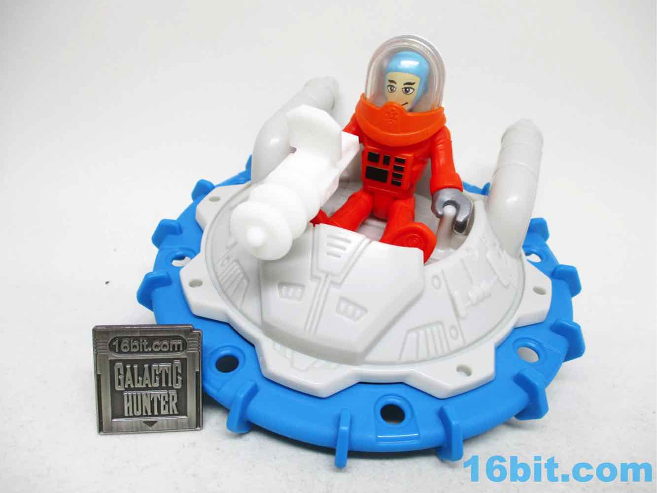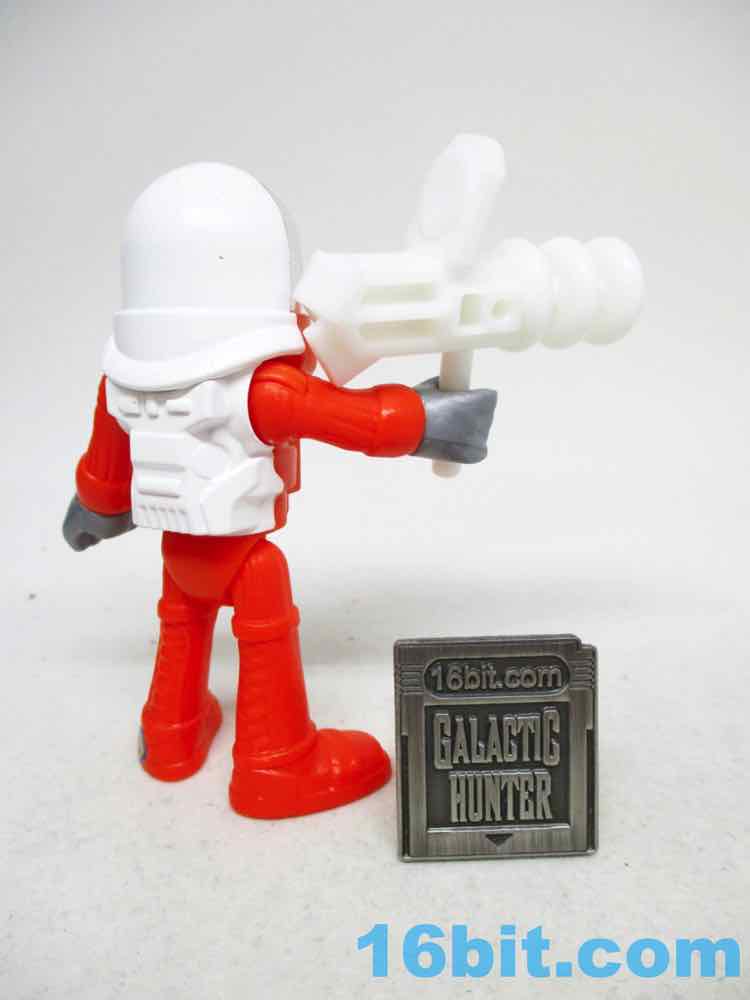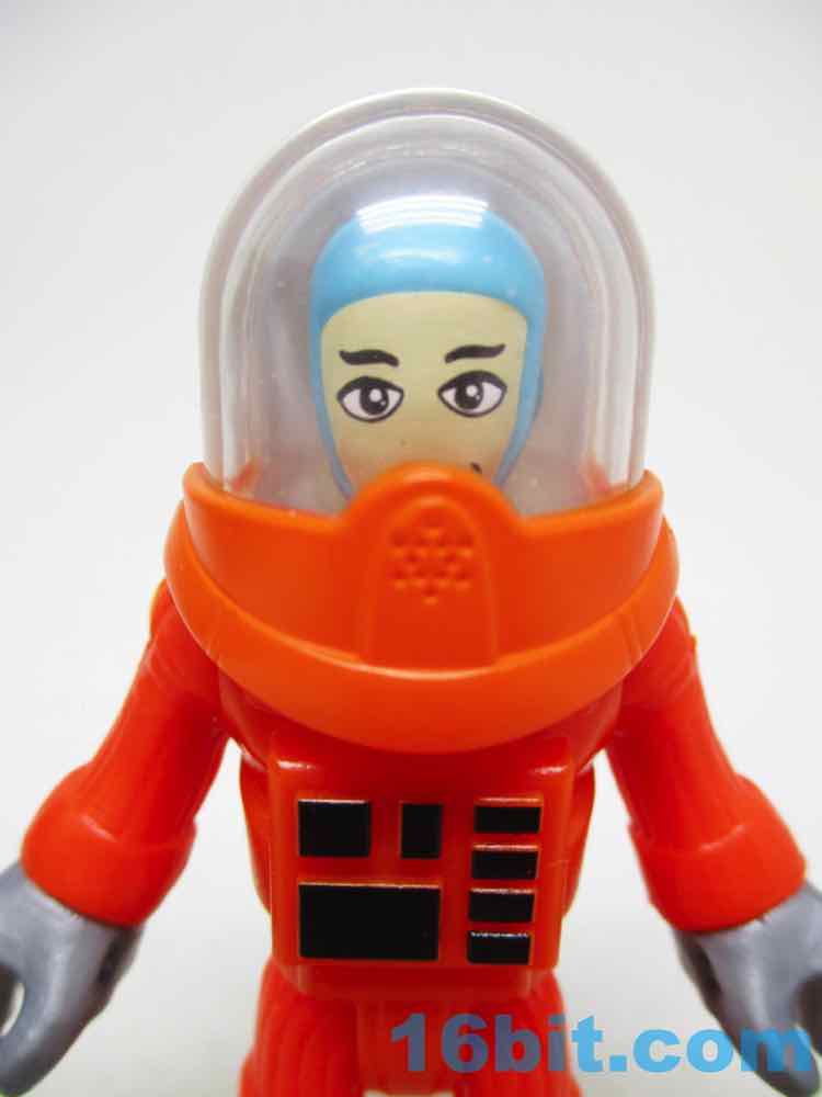 The 3-inch figure uses the same body as two previous releases, an Astronaut and a Clawtron update. Now molded in a redder orange color, the figure has a different head with no nose, but a painted cap. Why is there no nose? I can't say. It looks great - they painted the back of the helmet and torso white to stand out, and gave him a repurposes white blaster from the first line of space sets. It's nothing special, but it works, and it's cheap.