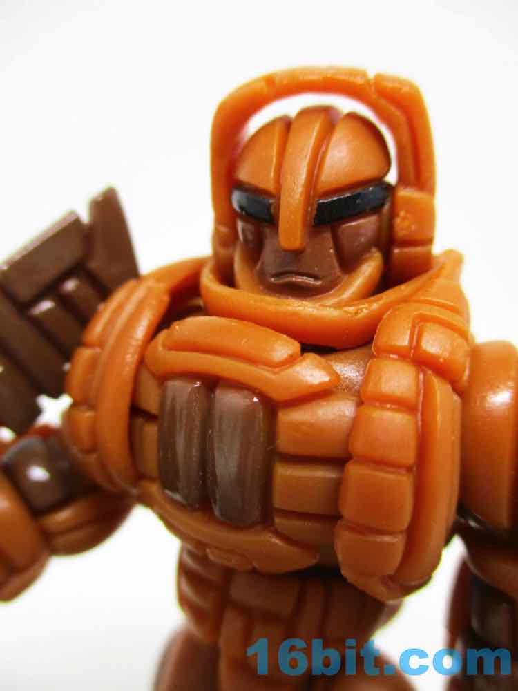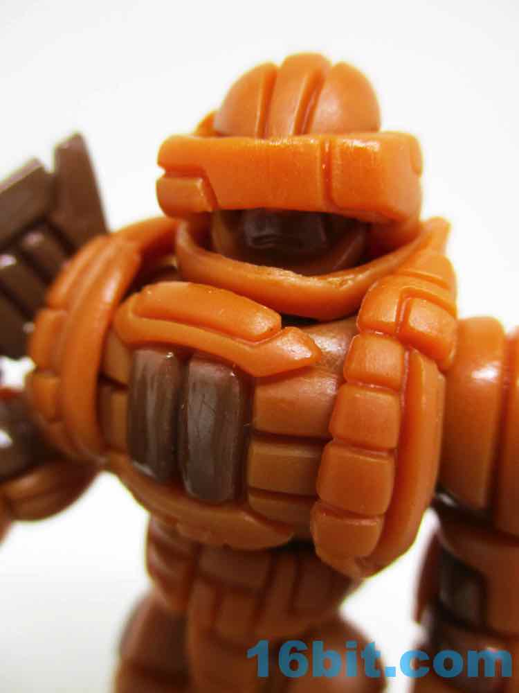 Onell Design takes years to complete some of its figures. The Sincroborg Buildriun had been in the design phase for quite some time, and it shows. Designer Matt Doughty probably knows just how long a figure needs to be viable and exciting, and by giving a figure three distinct heads, a head/weapon part, a vest, a knife, a blaster, some belts, and oh yes - a mask you can flip down, there's a lot of meat on these bones. I'm not 100% sure what all of his inspirations are, but it smells like Dragon Quest Golems, Mega Man, and countless other import figures were likely on his mind. And things I'd likely never guess. The end result is a distant cousin of his classic Buildman figure, which has been out of circulation for some time. You can see why this is better, though, with similar fists, a regular hand, and just so many parts to configure and reconfigure.