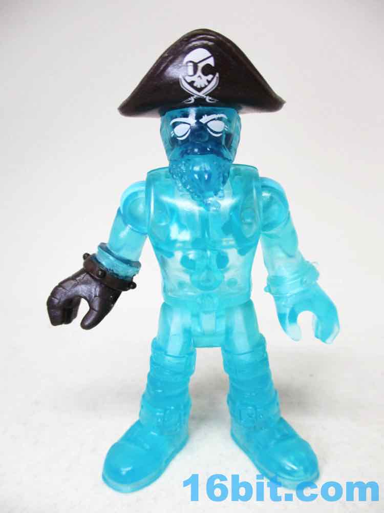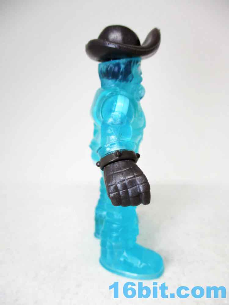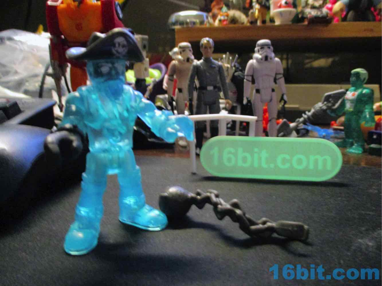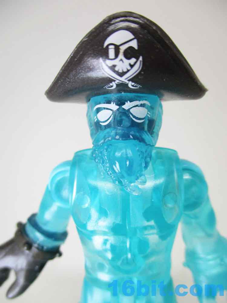 From a creative perspective, this is a brilliant figure. Cast mostly in a ghostly bluish green, the figure is largely unpainted - there's a bit on the wrist, and the eerie white eyes just under the crossbones on his hat. And that's it - and all he needs. You can see right through this spooky figure, which has no problems standing, sitting, or holding other accessories. It's kind of amazing this was a cheap, non-exclusive release instead of a convention exclusive or something targeted at collectors for a higher price. This is the kind of thing you should sell as a blind-bagged item in a gallery gift shop - it's cool, and it's fun.