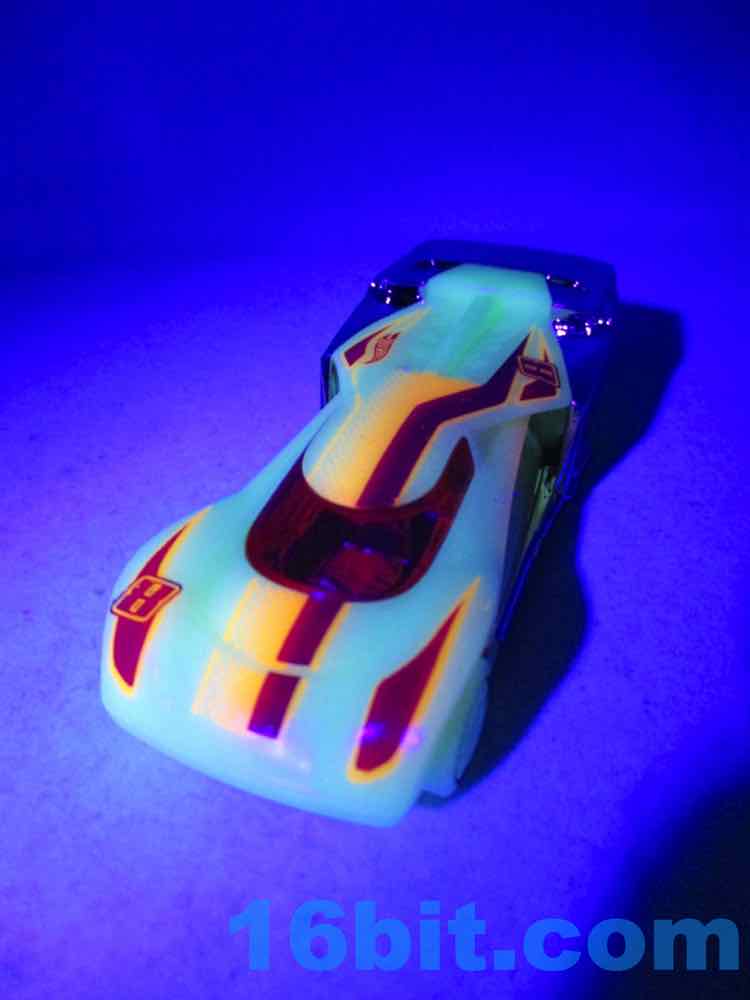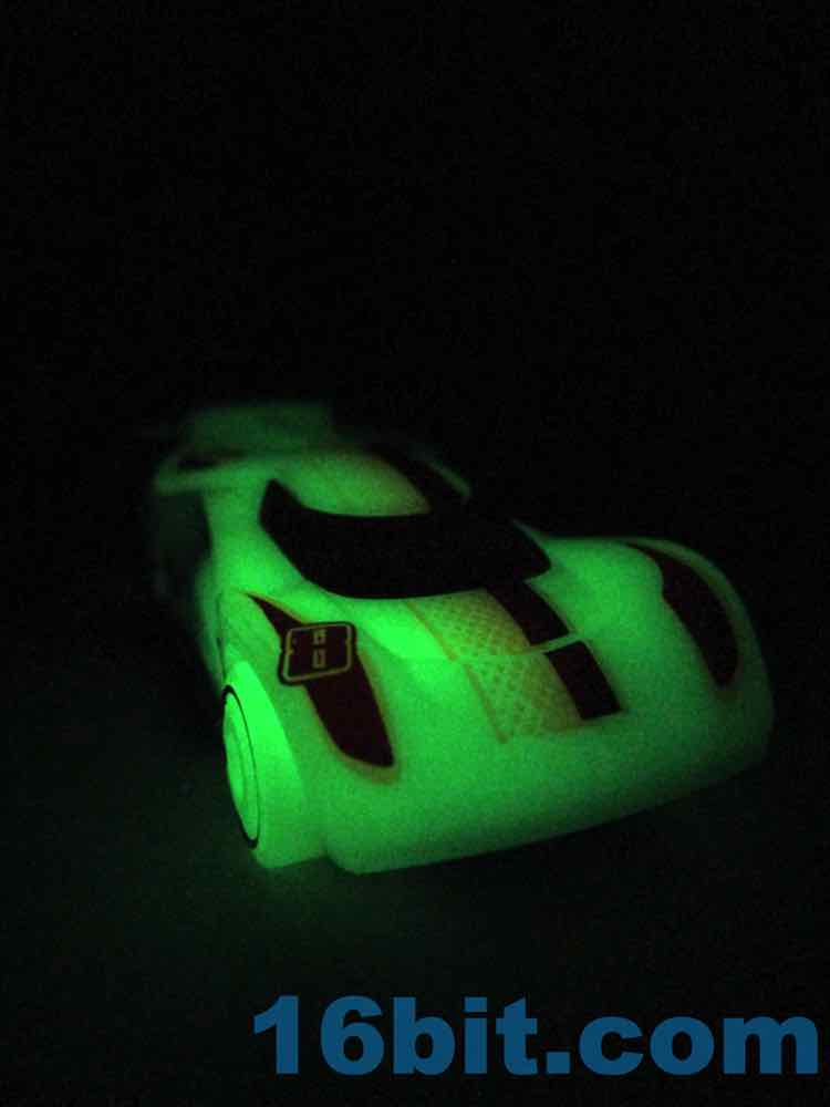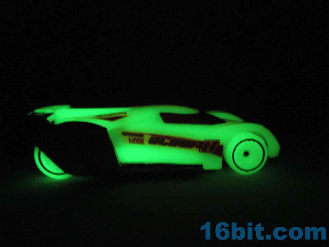 The glow plastic is pretty fantastic, as is the norm for Mattel's cars. There's a fair amount of it with chrome helping to highlight it even more. It's bright, it's shiny, it's good.