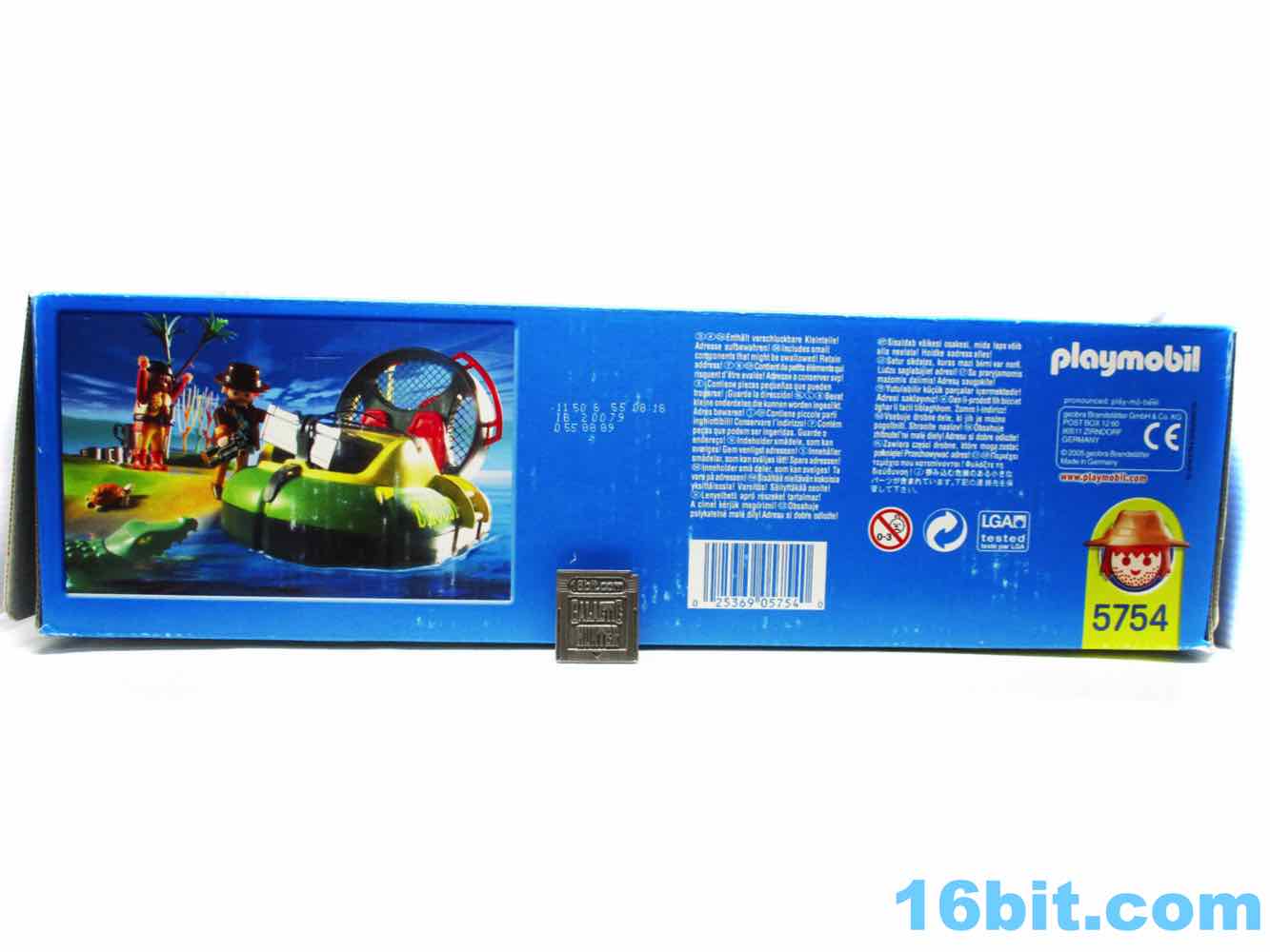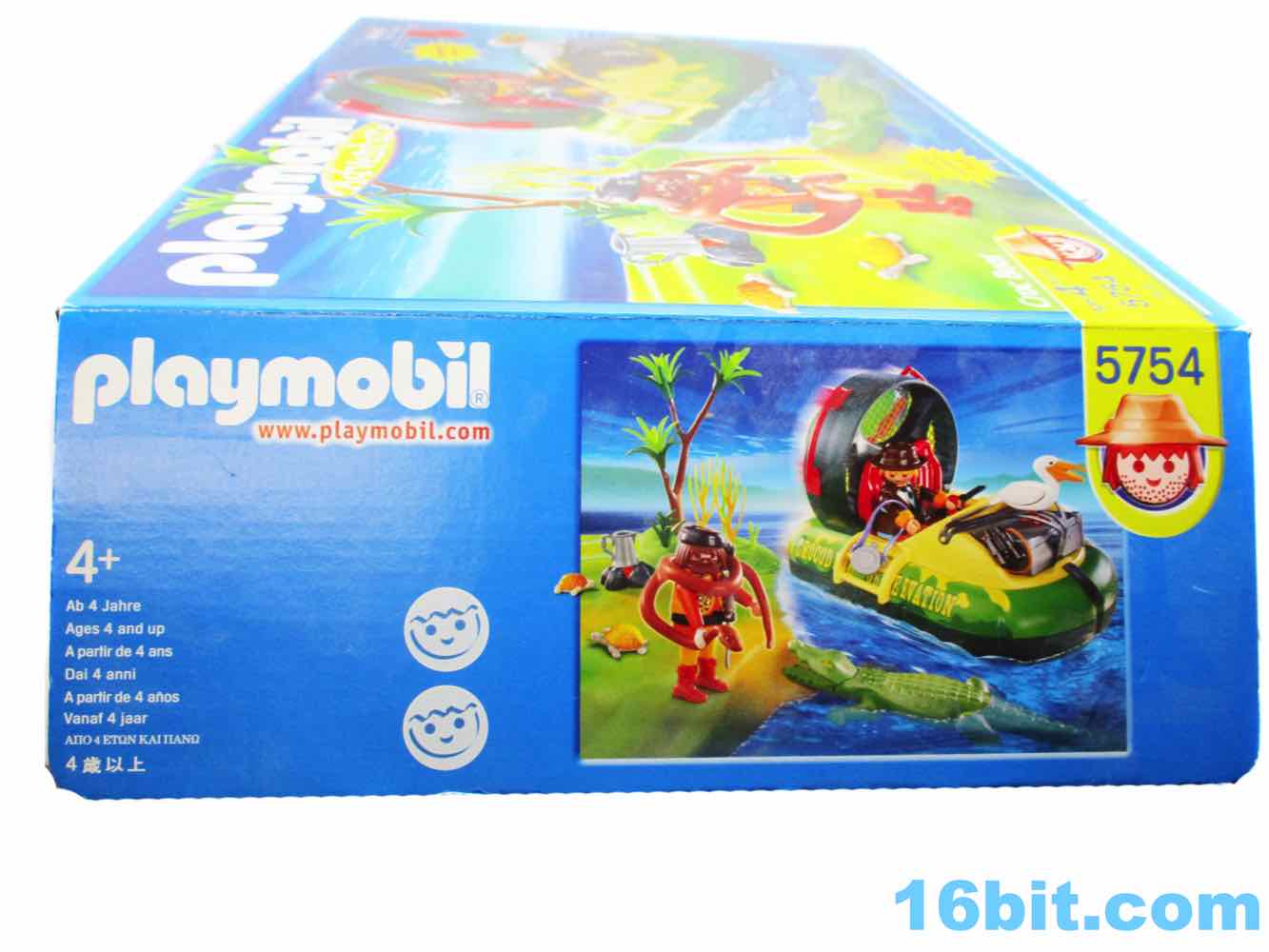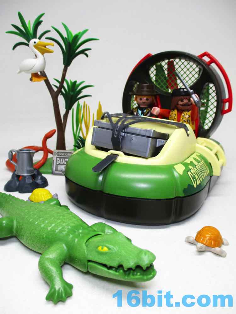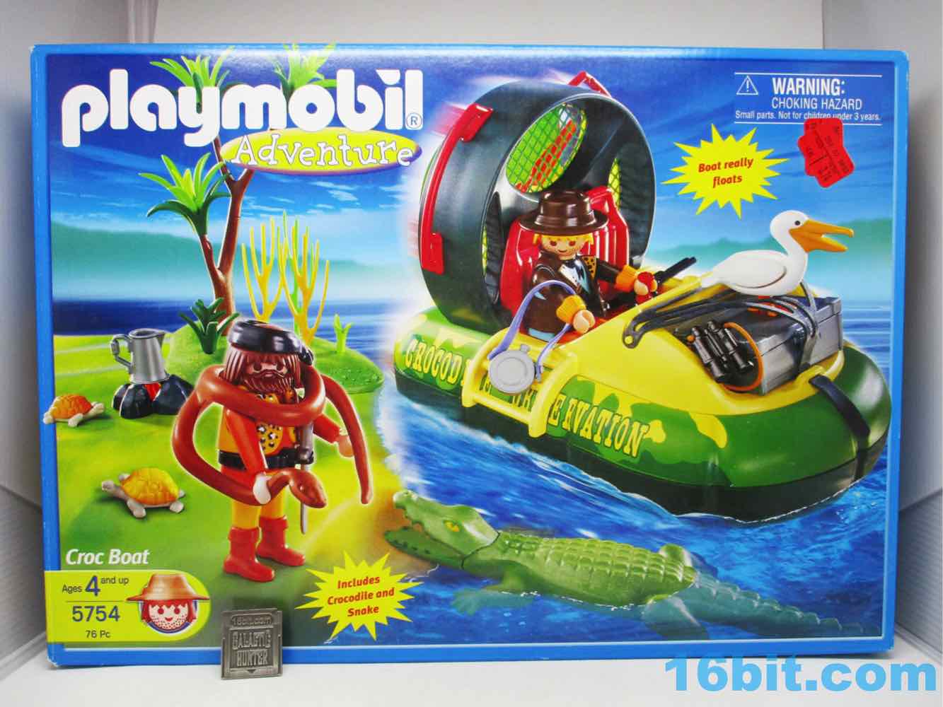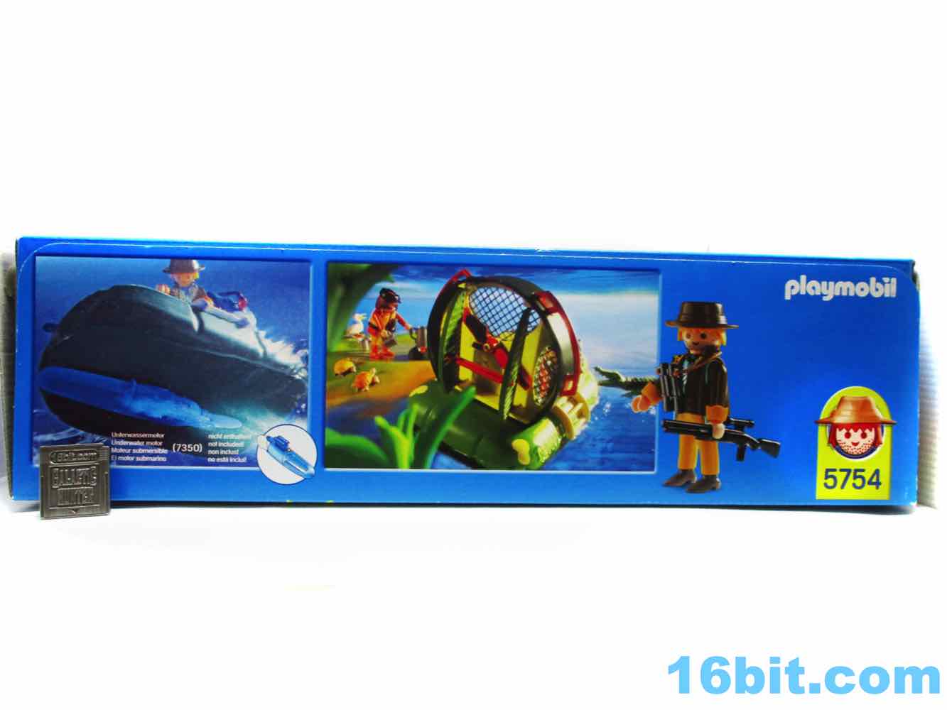 Item No.: No. 5754 Manufacturer:Playmobil Includes:Snake, turtle, another turtle, alligator, pelican, campfire, strongbox, cookware, two figures, canteen, tiny island with tree, rifle, binoculars, radio, axe, knife, and all the parts to make the hovercraft Action Feature:n/a Retail:$14.99 Availability:2005 Other:Croc + Boat = Croc Boat