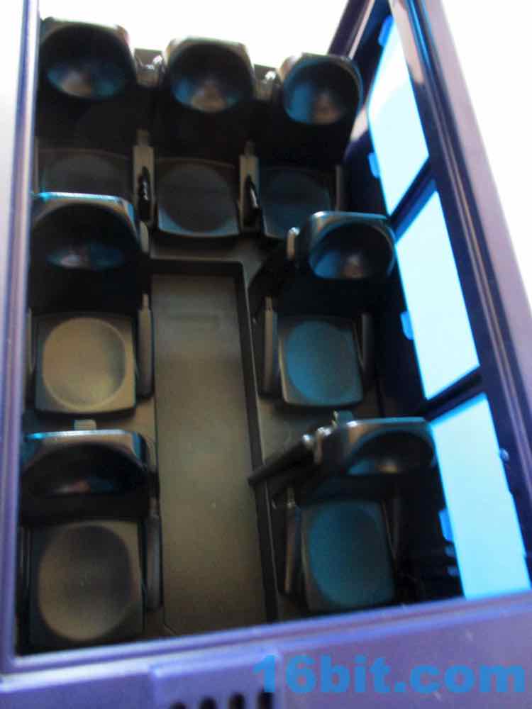The wheels roll freely, and the side hatch opens to reveal a small storage area. On the opposite side, a door opens and you can fold down a couple of steps for figures to walk up. It is not accessible. The back hatch opens for more storage, and has yet another hatch to reveal the bus' engine - this is pretty cool. There's also a steering wheel that moves, and you can pop the roof off to access your figures.