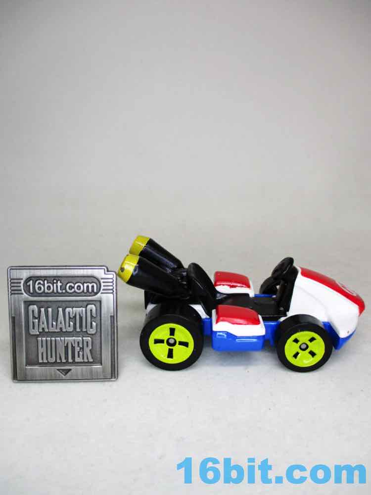 Based on the standard Kart in Mario colors, this one has unusually large wheels and rolls incredibly smoothly. I was surprised how it glided across my mouse pad with far less resistance than my other cars. There's nothing scraping across them and I assume if my home had wood floors instead of tiles, it would go incredibly far out of one of my launchers before spinning out.
