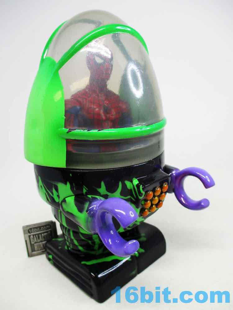 My sample also came with a clear dome with green markings, so you can better seen a figure inside the suit. It seems ideal for Funko Pop! figures (with no dome), or 1990s Kenner figures - the 5-inch ones. You can get larger figures in here but it might require some work - I got my super-articulated 6-inch Hasbro Marvel Legends Spider-Man in there, because he's flexible and can be easily folded up inside the suit. And he looks surprisingly great in there.