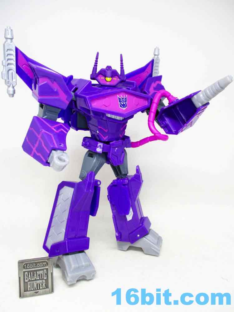 Hasbro doesn't like to talk about its Authentics toys - anything that isn't for collectors tends to get swept under the rug. This Shockwave tends mostly to show up outside the USA, but you can find them here as a "value" or "grocery" channel item - I found mine at the grocery store when I was picking up some food. While previous releases in this line tended to be stylized "Evergreen" designs, Shockwave eschews most previous alt modes with a sort of purple space ship, and a robot clearly inspired by the contemporary Cyberverse toy. And it's rather nice as a big robot figure.