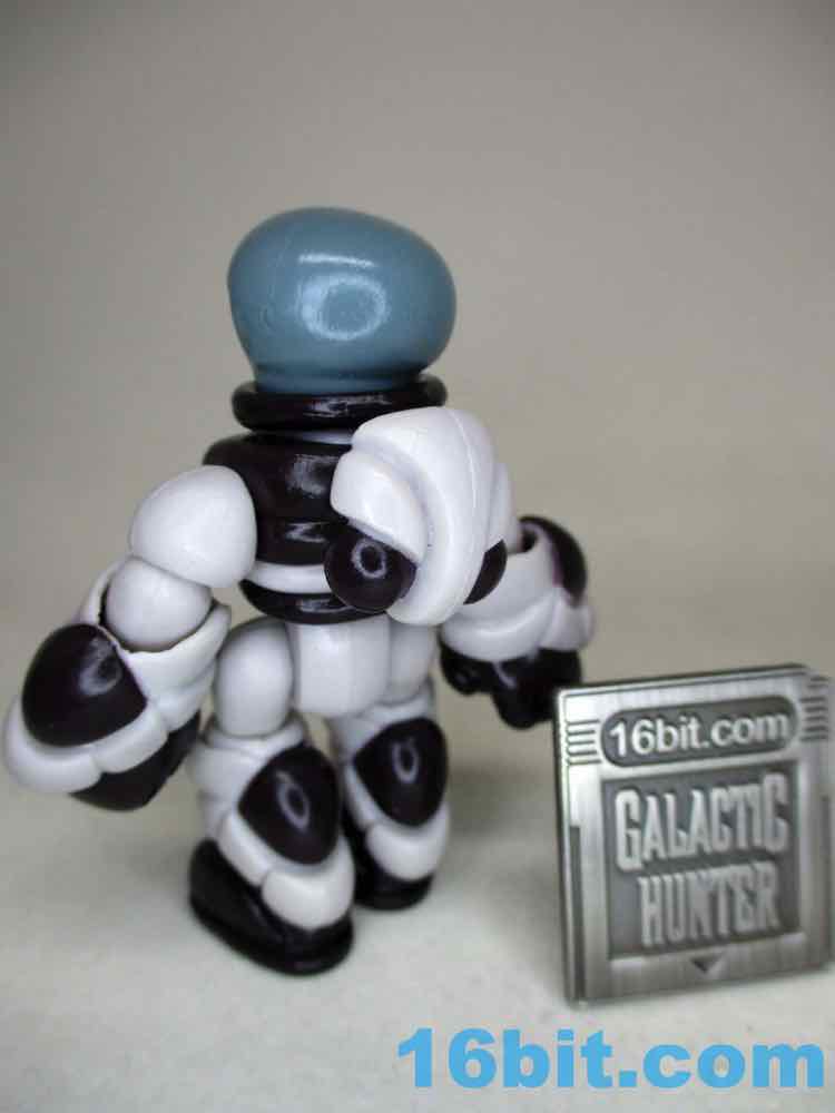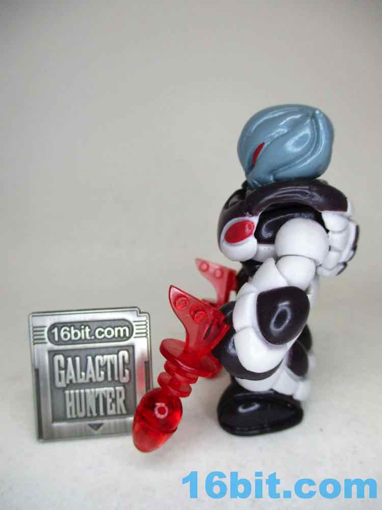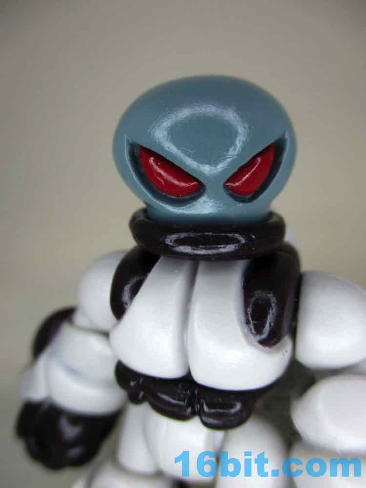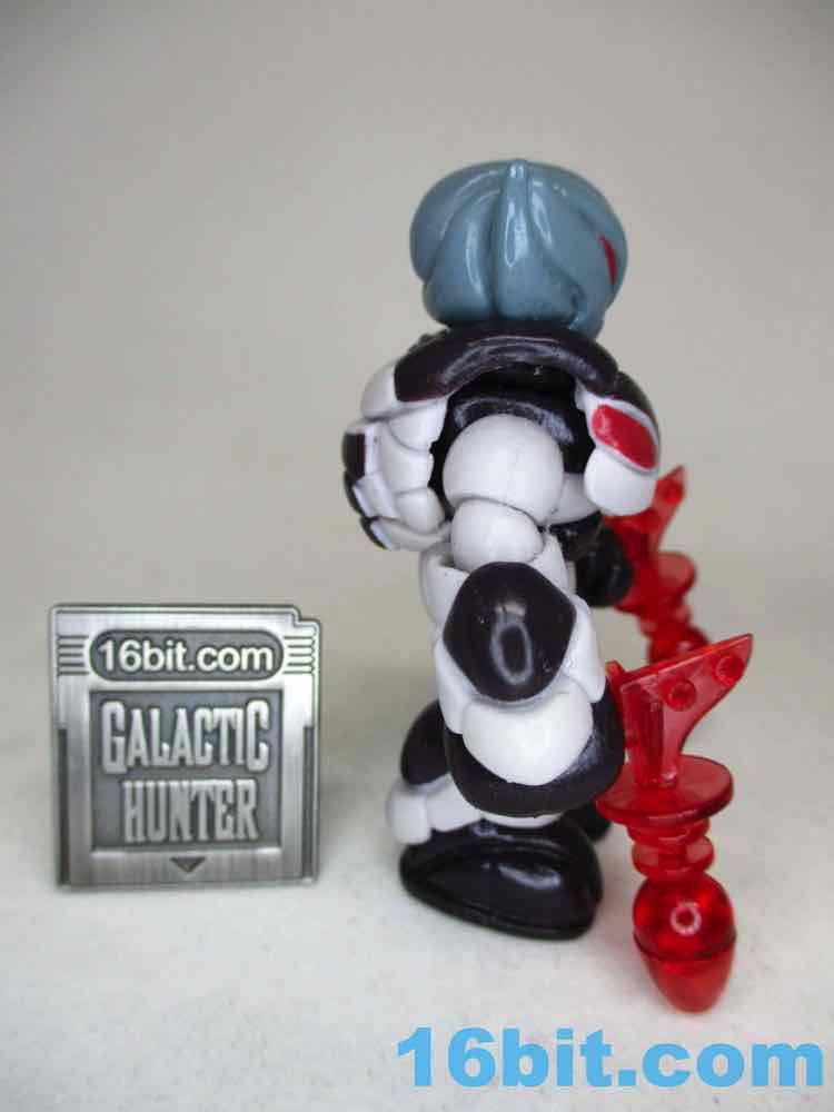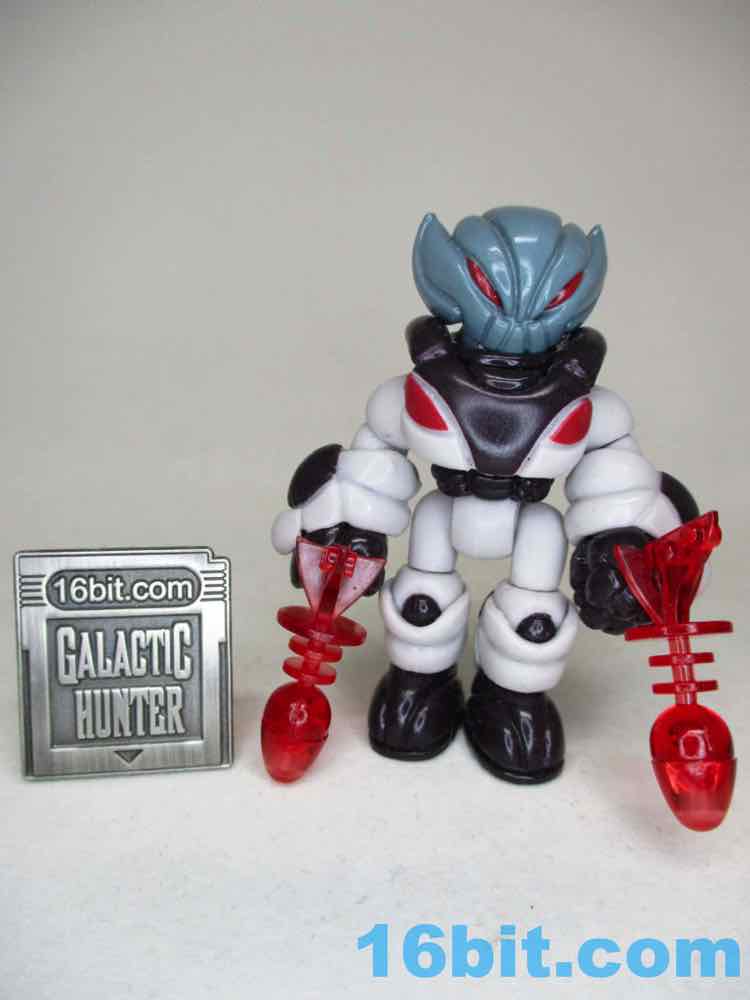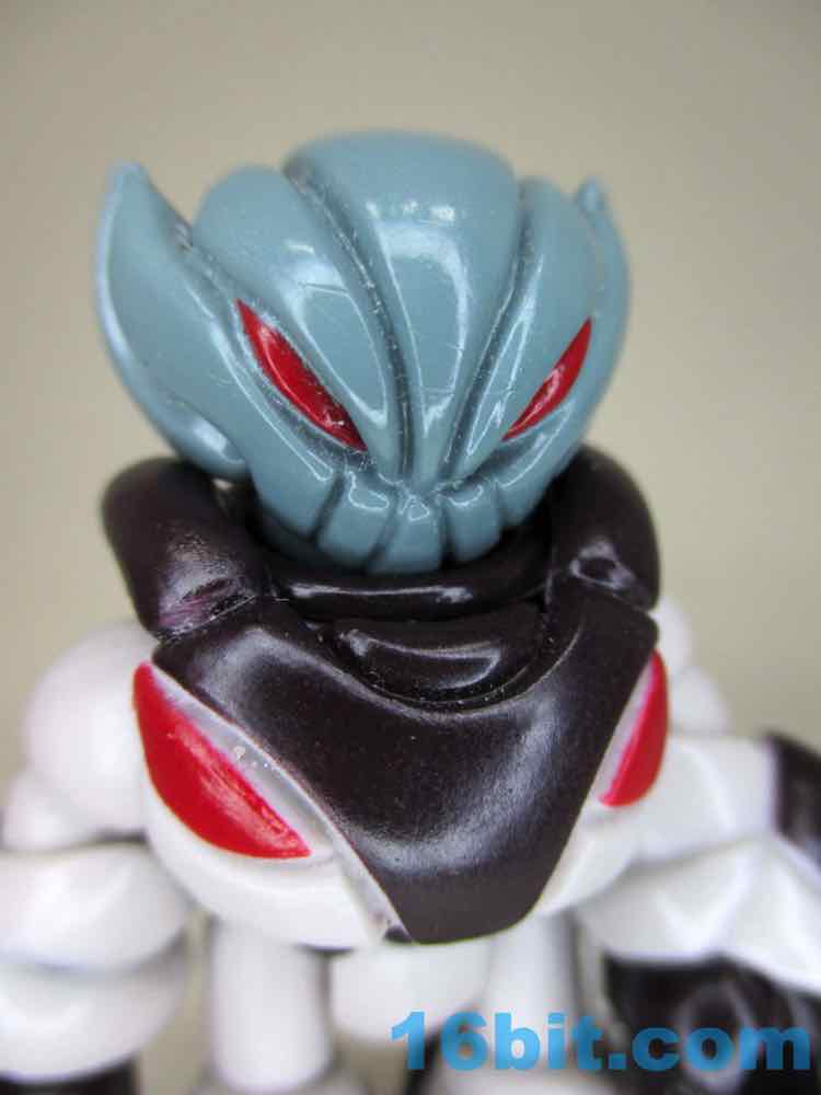 The Quallerran head has big red eyes and large ear-like pointed elements, and the included Noboto head is the same coloring with a head that looks like a Grey alien or a light bulb. The entire figure is molded in a light grey plastic with every color painted on - the factory does an amazing job applying thick, glossy paint so that the plastic color never shows through. It's pretty amazing. With the armor on the limbs, the figure looks more than a little bulky - but it works. If you're dealing with a creature surviving in space, it is reasonable that a Quallerran might want some sort of space suit or power armor to make the journey from one edge of space to another.