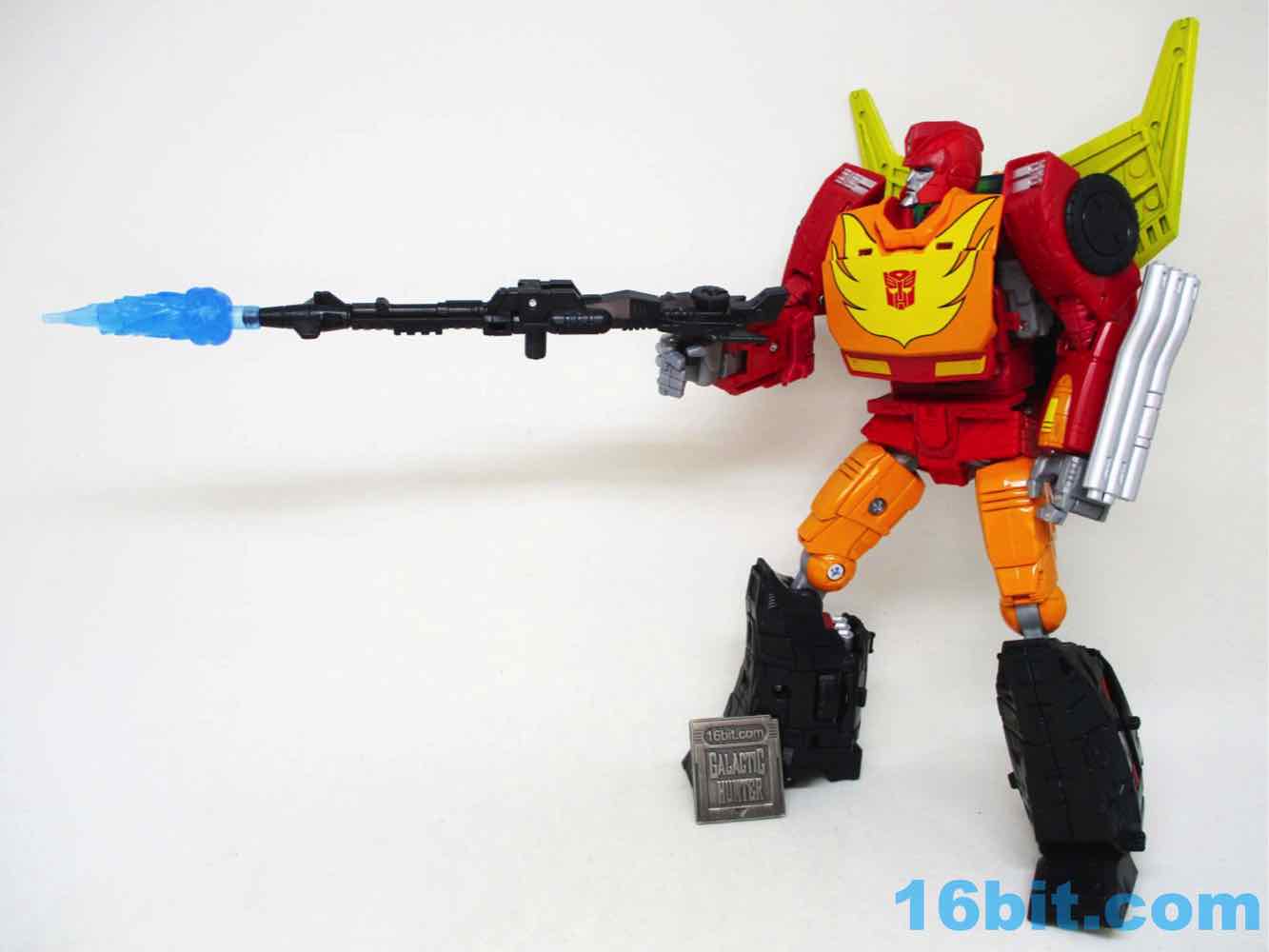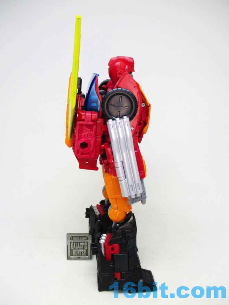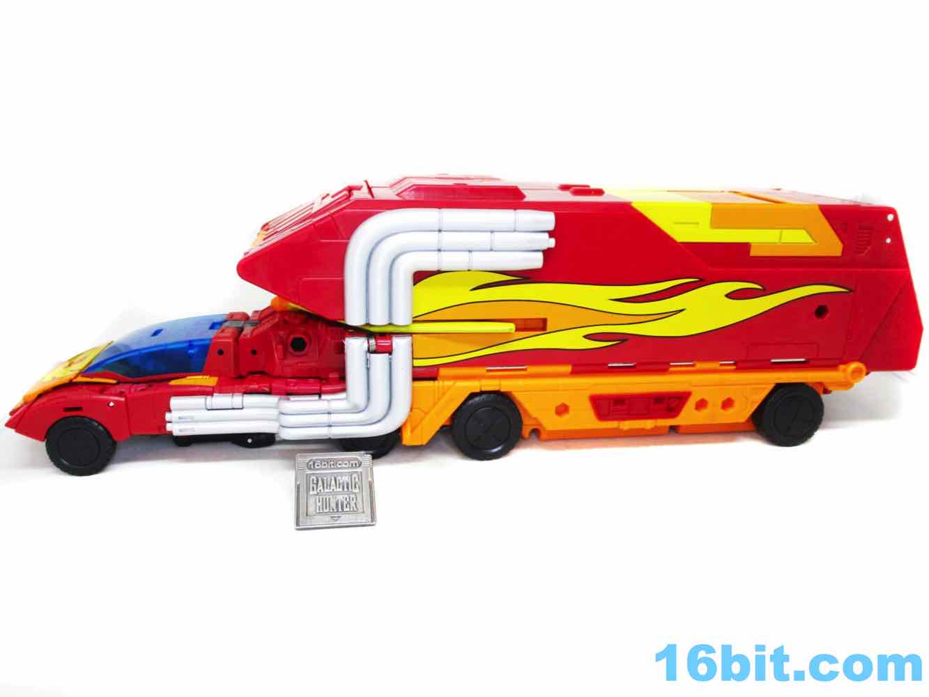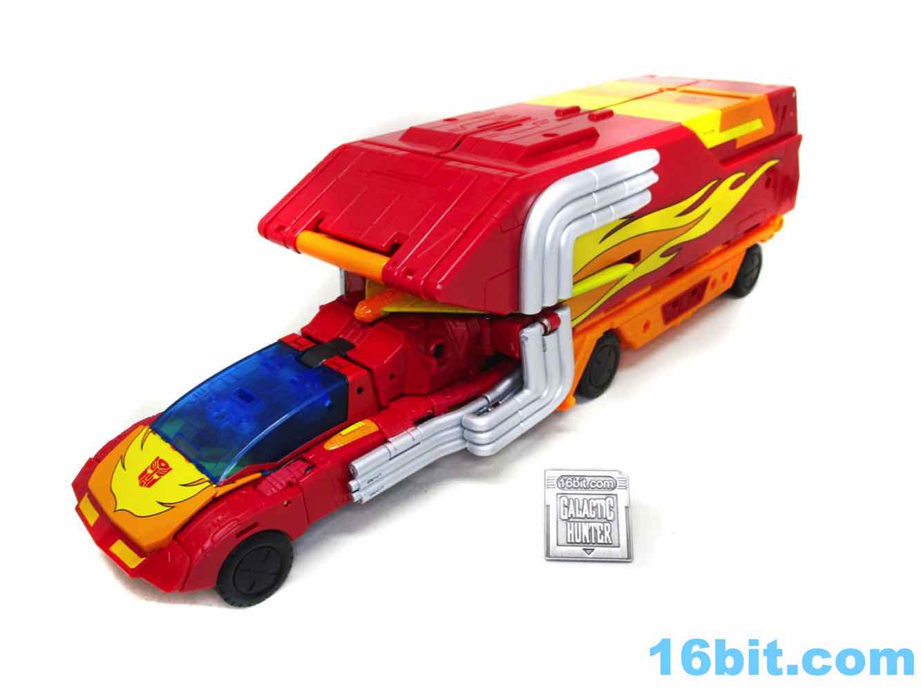 I don't like paying $80 for anything, so when I saw that Rodimus Prime would be a beefier toy than last year's Leader-Class Earthrise Optimus Prime [FOTD #2,10] - which itself an impressive figure but a stretch at $50 - I wasn't sure what to make of it. I wasn't happy that Rodimus' spoiler was painted yellow rather than molded in color (especially at the price!) but everything else is pretty good. My only other nitpick is it's tough to close the trailer in vehicle mode with everything crammed inside. Everything else about it is impressive. You get pretty much all the same gear as the G1 toy, but it's a lot bigger and has more bells and whistles. The transformation is mostly intuitive, the sculpting is excellent, and there are probably too many things to list in a review with my current attention span.