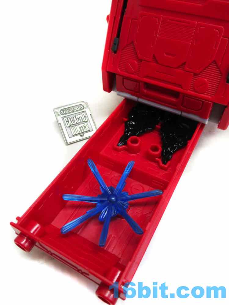 The trailer unfolds to reveal an incredible Mobile Defense Bay with an articulated blaster cannon and tons of storage spots. You can store some items in a drawer under the vehicle, and there are a few opening compartments for storage with things like metal pistons for no good reason. It's not quite a Masterpiece-level toy, but for the asking price they're clearly getting a lot closer. You can also remove the cannons from the bay if you like, and they can be carried around like a backpack too. This toy can't decide if it wants to be the best toy or the best collectible you've ever had, so if you're an older fan who opens toys you'll find something to like about it.