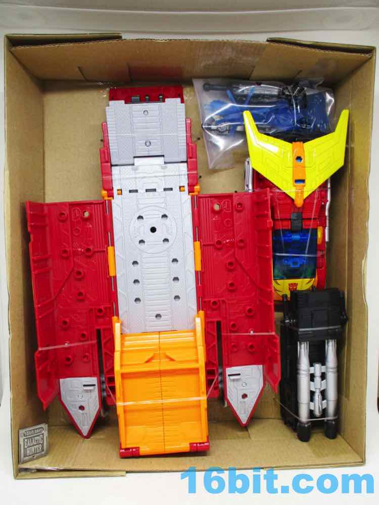 The robot is a hair under 7-inches tall, which is not impressive. What is impressive is how all the kibble largely tucks away, with wheels folding inside the legs. The double-jointed elbows are nice, but the articulated fingers are much more impressive than other toys in the line. The slightly older face sculpt looks a bit more serious, while the legs have exceptionally good articulation. The paint is pretty much spot-on, too. I wish the eyes were a bit brighter, but that's tough to do given the helmet design. It's basically a super-articulated robot figure with 12 joints per arm and another six per leg, plus the toes can move a bit too. It doesn't seem like Hasbro or Takara-Tomy cut a lot of corners when making this toy, which is good, because as I keep repeating it's north of $80. It's a difficult job translating the later-era G1 animation models to toys because they just made the kibble disappear giving you a slim robot silhouette, so finding a toy able to contort panels and wheels to mimic that look is something beautiful. It's also the kind of thing that can only exist as a toy line matures, the fact that the original movie is 35 years old with the original line pushing 37 means fans have more money and Hasbro knows how to get it.
