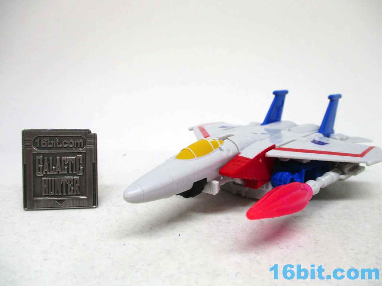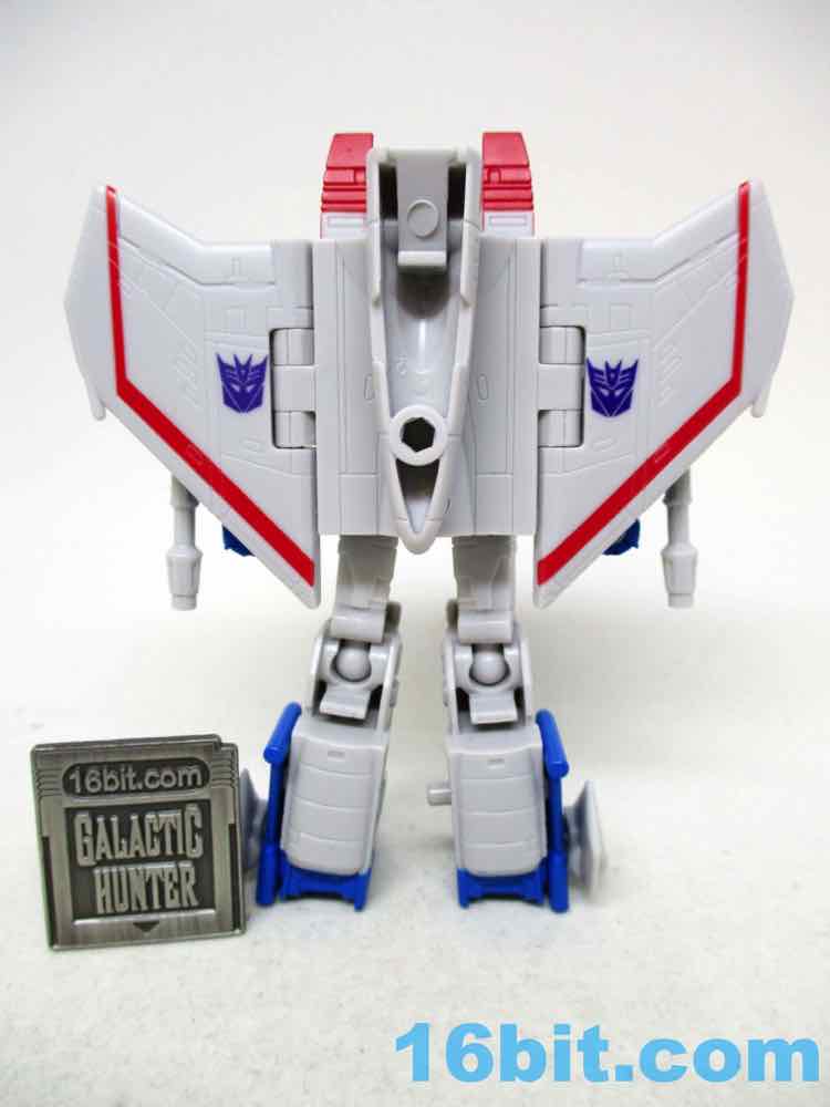 We've had tiny versions of characters in varying sizes since Hasbro got into G1 remakes in the mid-00s. This 3 1/2-inch Starscream joins a tiny Legends toy, a bigger Legends toy which came with a tiny Waspinator, multiple Deluxe releases, and even a couple of Voyagers. And a leader. And a combiner torso. There will, no doubt, be many more as time goes on, each of which offer some worthwhile features. Sadly we've been getting a bit less on some of these toys lately - a similarly sized but $5-$7 figure in the Authentics line can be bought right now, for example - but without the complexity or nearly as many colors.