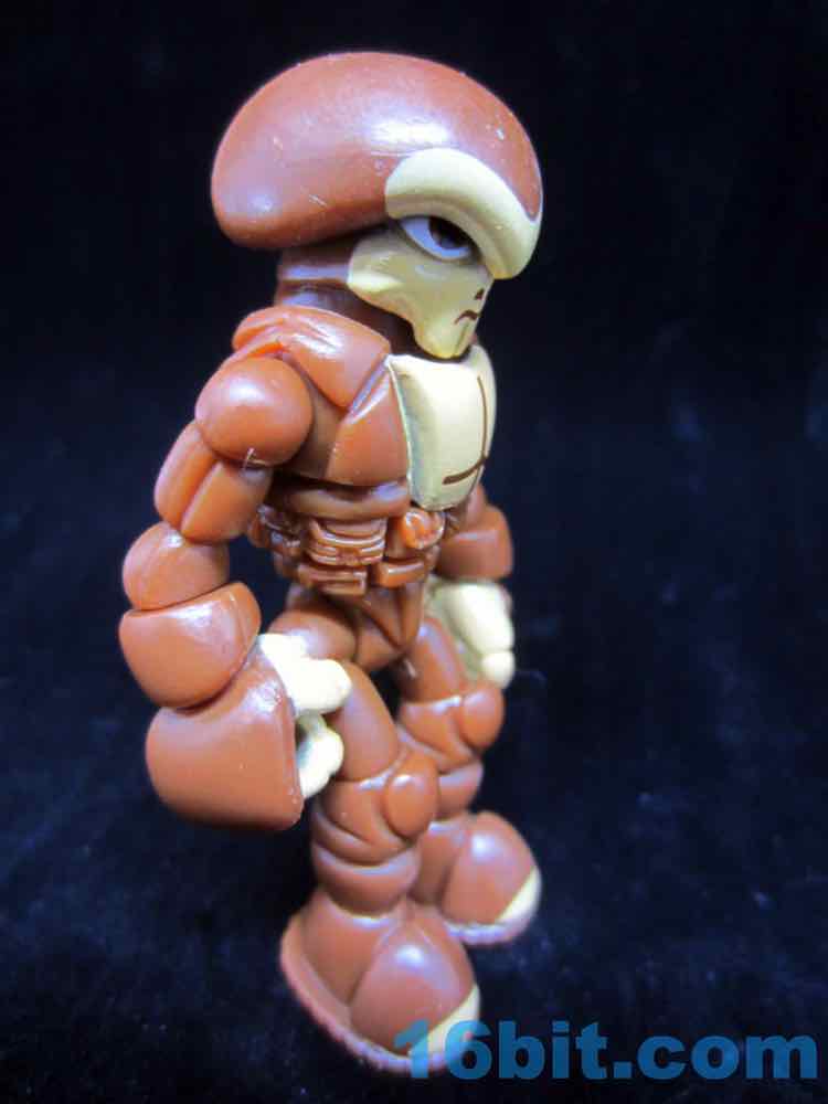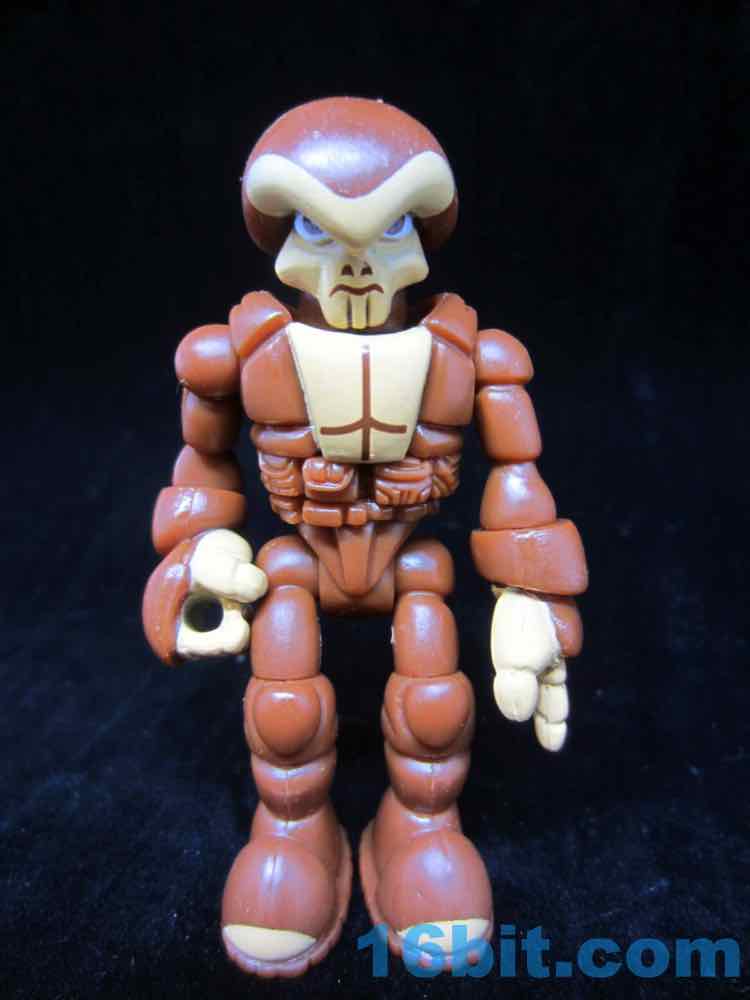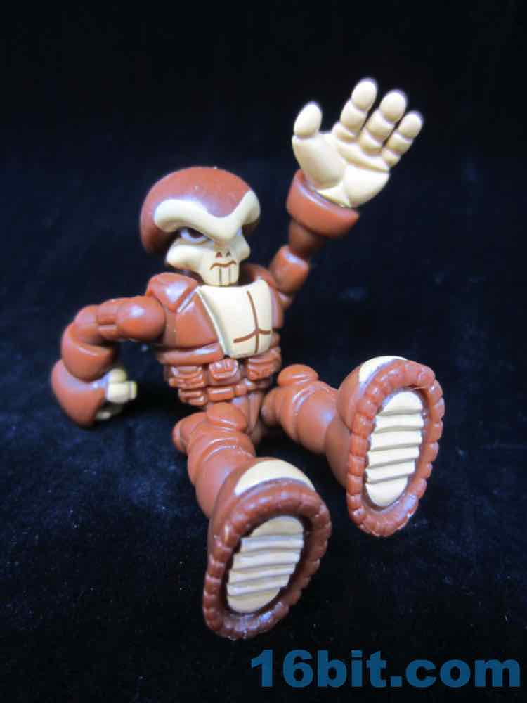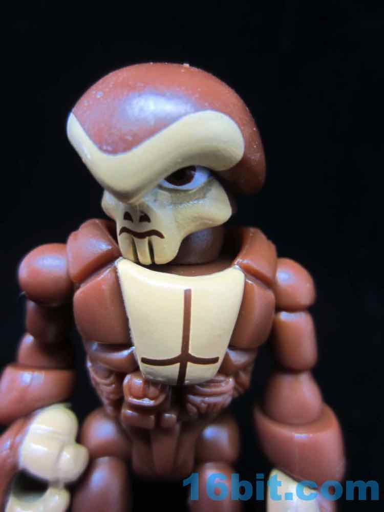 Cast in brown, the figure shows just how versatile the aging Pheyden mold has been. Sure, it's an alien with a skull-like face and a belt with pouches on it, but a little paint goes a long way. The artist painted on nostrils and a mouth above a skull/Thanos-like chin, with painted muscles on the chest and light tan hands to give the illusion of flesh next to hairy body parts. And they make it look easy, because there's a fleshy brow and big brown eyes too.