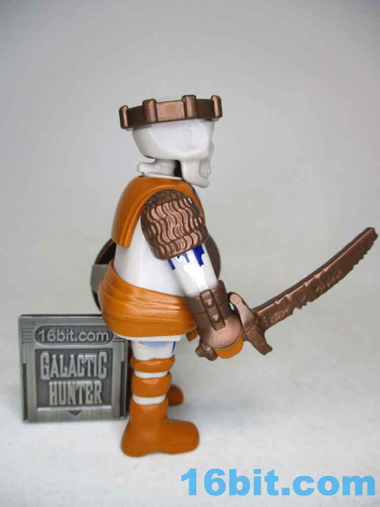 What's funny about my decades of buying Playmobil is that some things serve absolutely no purpose for years. My Lost Island Set [FOTD #1,584] sat on a back shelf until I realized the plants were the perfect Star Trek original series scenery. I had a clown that sat in a box until I realized adding a knife to it made it super creepy and awesome. And who didn't put the DeLorean in one of their gold mine playsets? Similarly, this kind of skeleton figure would be right at home in the old 3674 Knights Ruin, or perhaps the 3017 Treasure Cave. None of this means anything to most of you, but trust me when I say that keeping around whatever sets you find on clearance generally pays off in terms of finding fun ways to futz with your new toys later. I genuinely have no idea when a figure may prove useful, or the perfect addition to some playset I already have and didn't realize was missing something. This seems like a great figure for long-term fans or people who just like creepy characters.