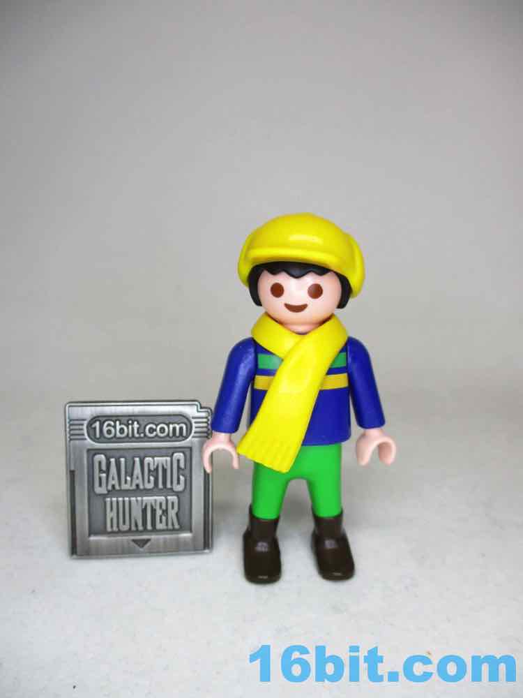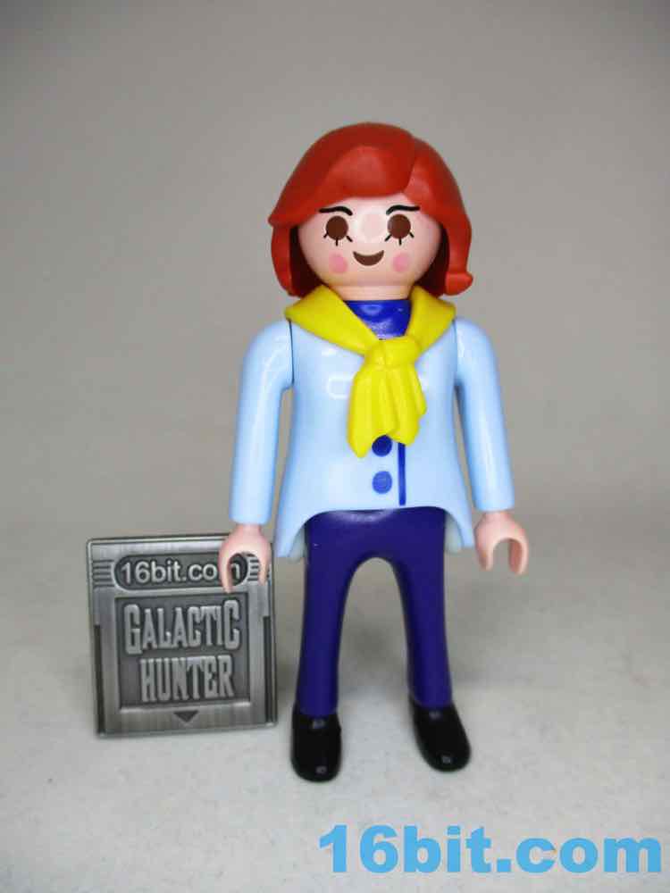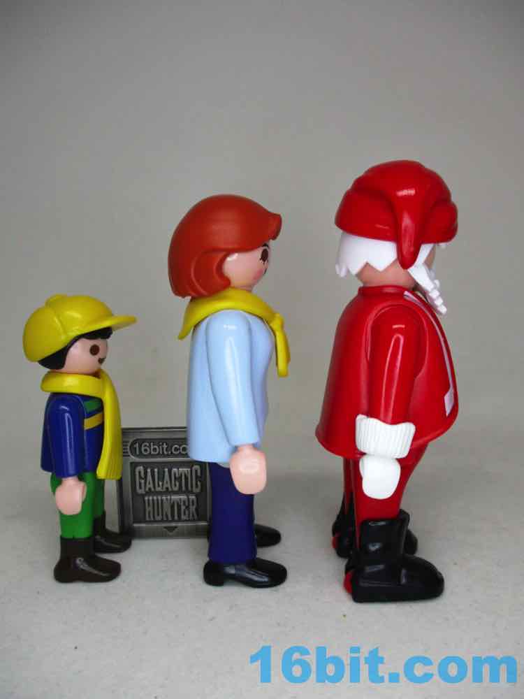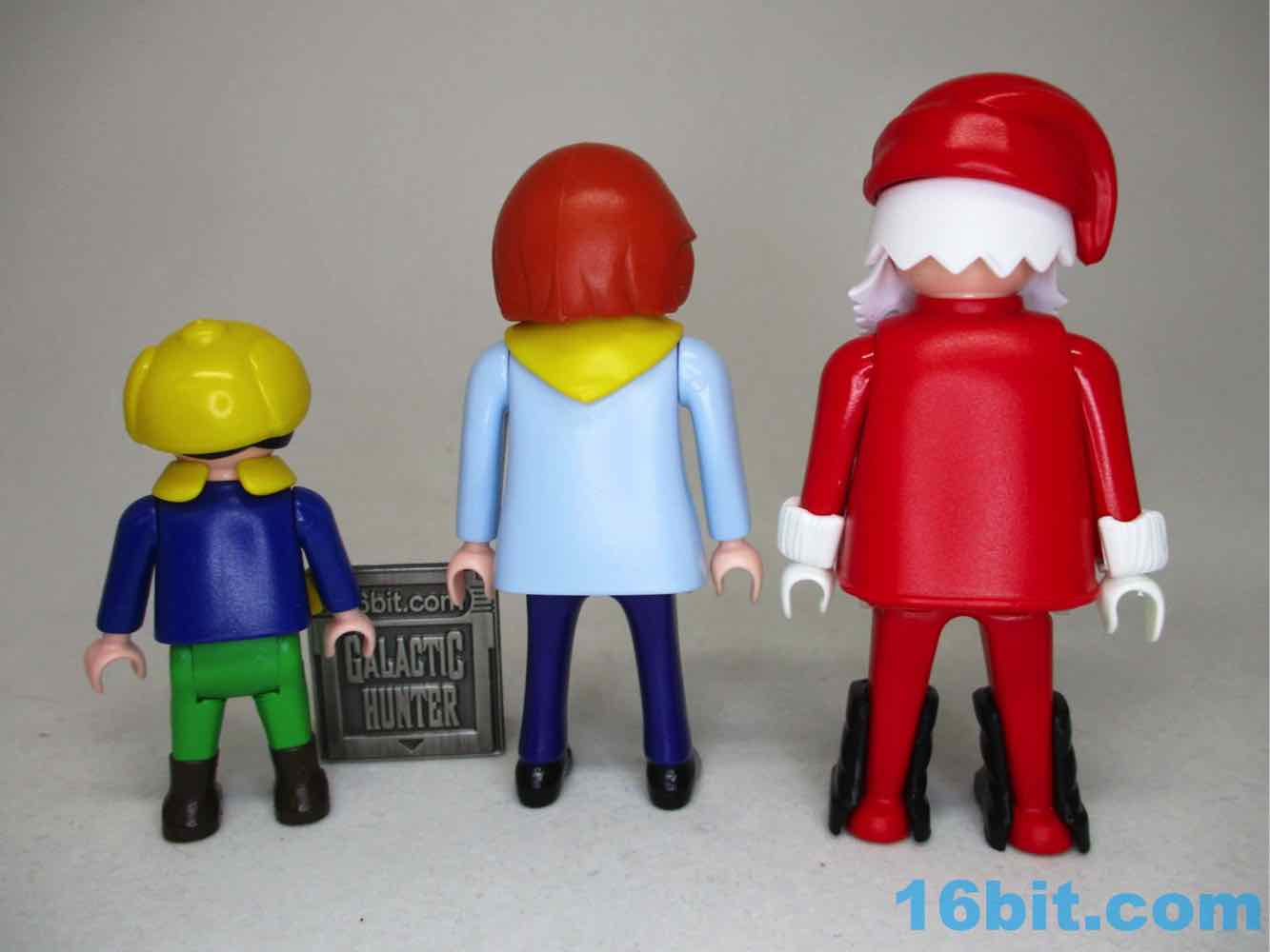 The photographer is a reused figure that was sold in some bus sets around the time of its original release - she's neat. Her shirt has buttons, she has a yellow scarf that's effectively not removable since her head holds it in place, and she has real shoes. (Not like Santa.) She has no problems holding or setting up the camera, and is a perfectly nice Playmobil figure with a hairstyle piece you don't see much anymore.