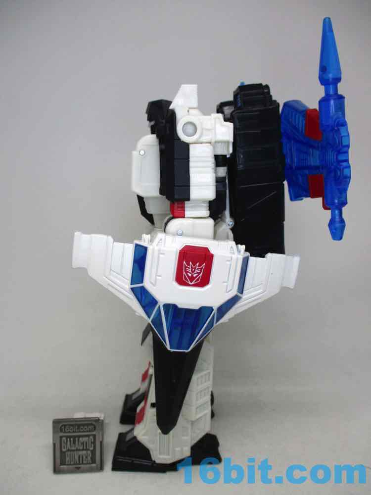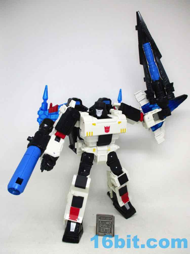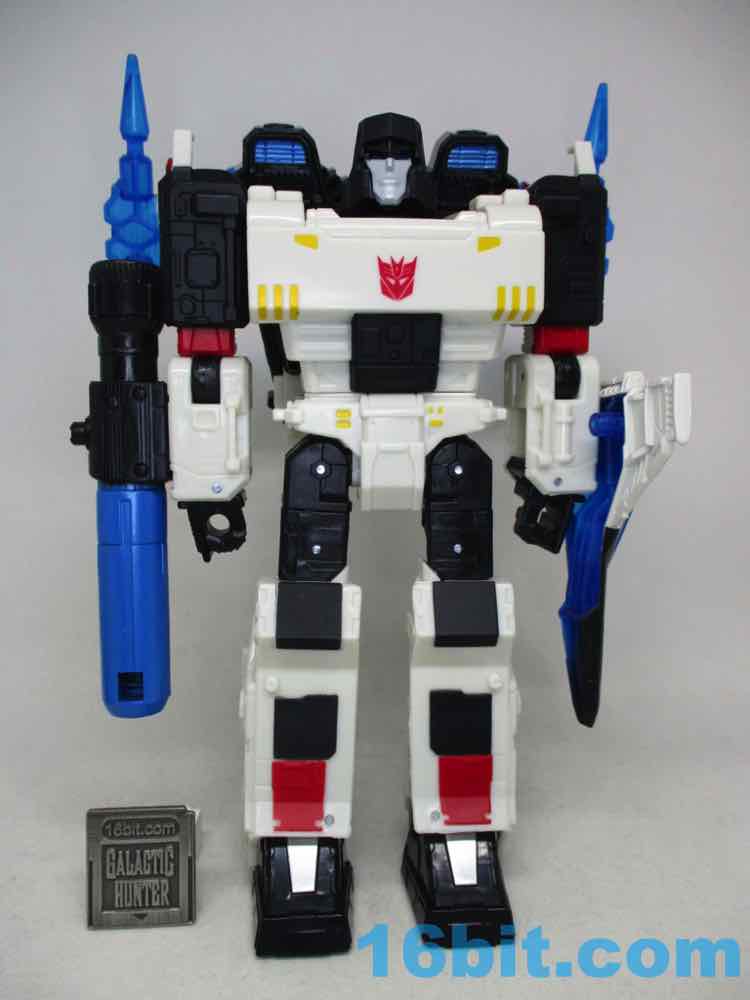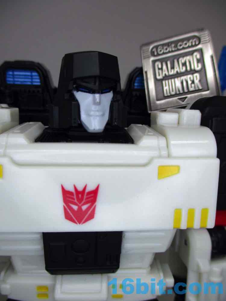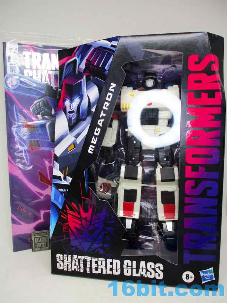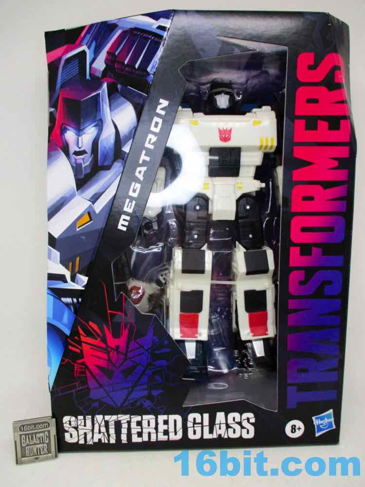 As a robot, it's fine - it's an off-white Megatron with some blue and some red, with the black helmet just like some of the early prototypes/models/etc. for the original Megatron marketing and toys. Because it is significantly cheaper than the BotCon model, it's going to be popular and is the first Shattered Glass Decepticon to be released outside the BotCon/Fan Club world.