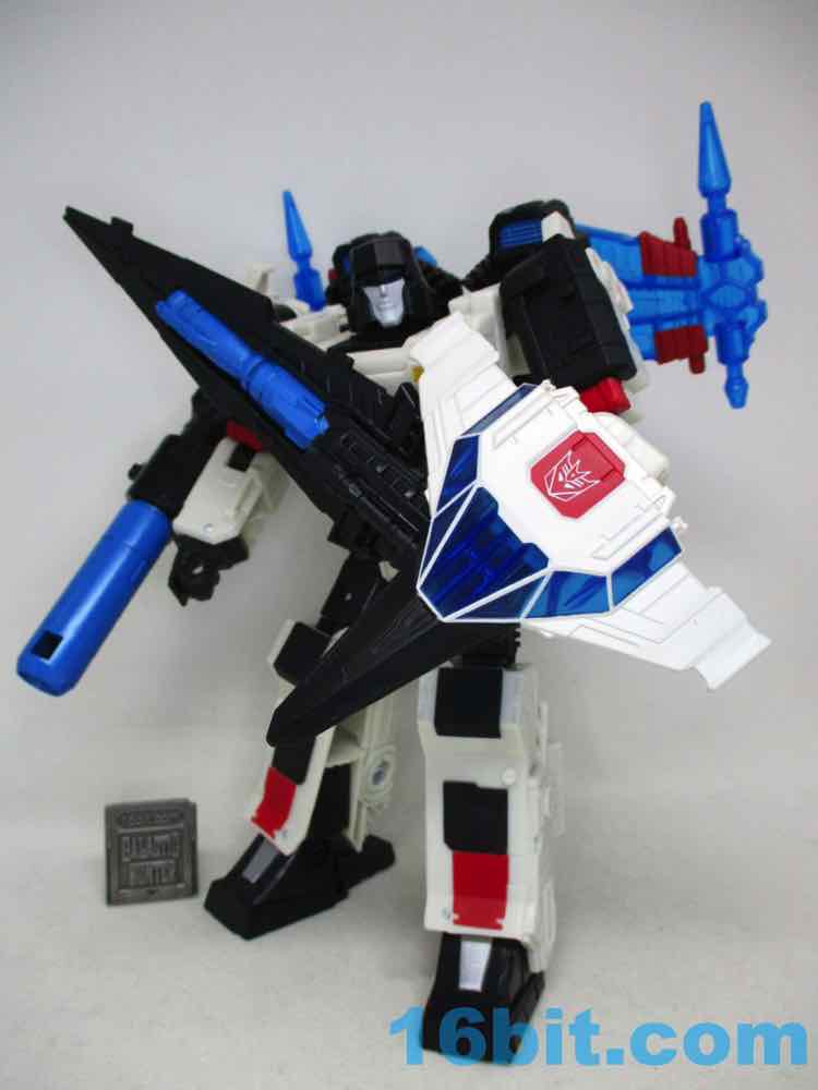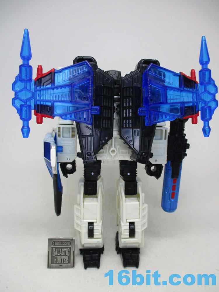 Megatron is Megatron, without battle damage and with some new colors. Siege Megatron has been done several times - the basic version, a G2 Combat version, 3 with Netflix-specific deco so far, plus another one with G1-style animation paint. (And two retools based on a revised Earth mode!) This is the first Siege version without extensive paint - no tiger stripes, and no battle damage, which alone makes it stand out as something interesting. He has a sword on his arm that's a nod to the tank/sword from Energon Megatron, and the blue rocket wings are similarly based on that mold. The sword is the same sword you got with Siege, and the painted fusion cannon looks a bit like the BotCon toy - it's just not clear.