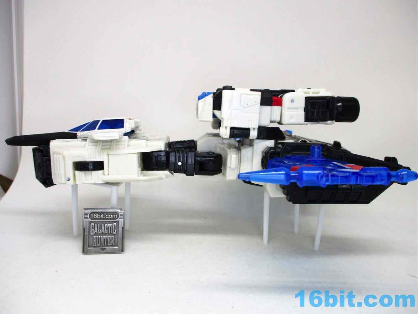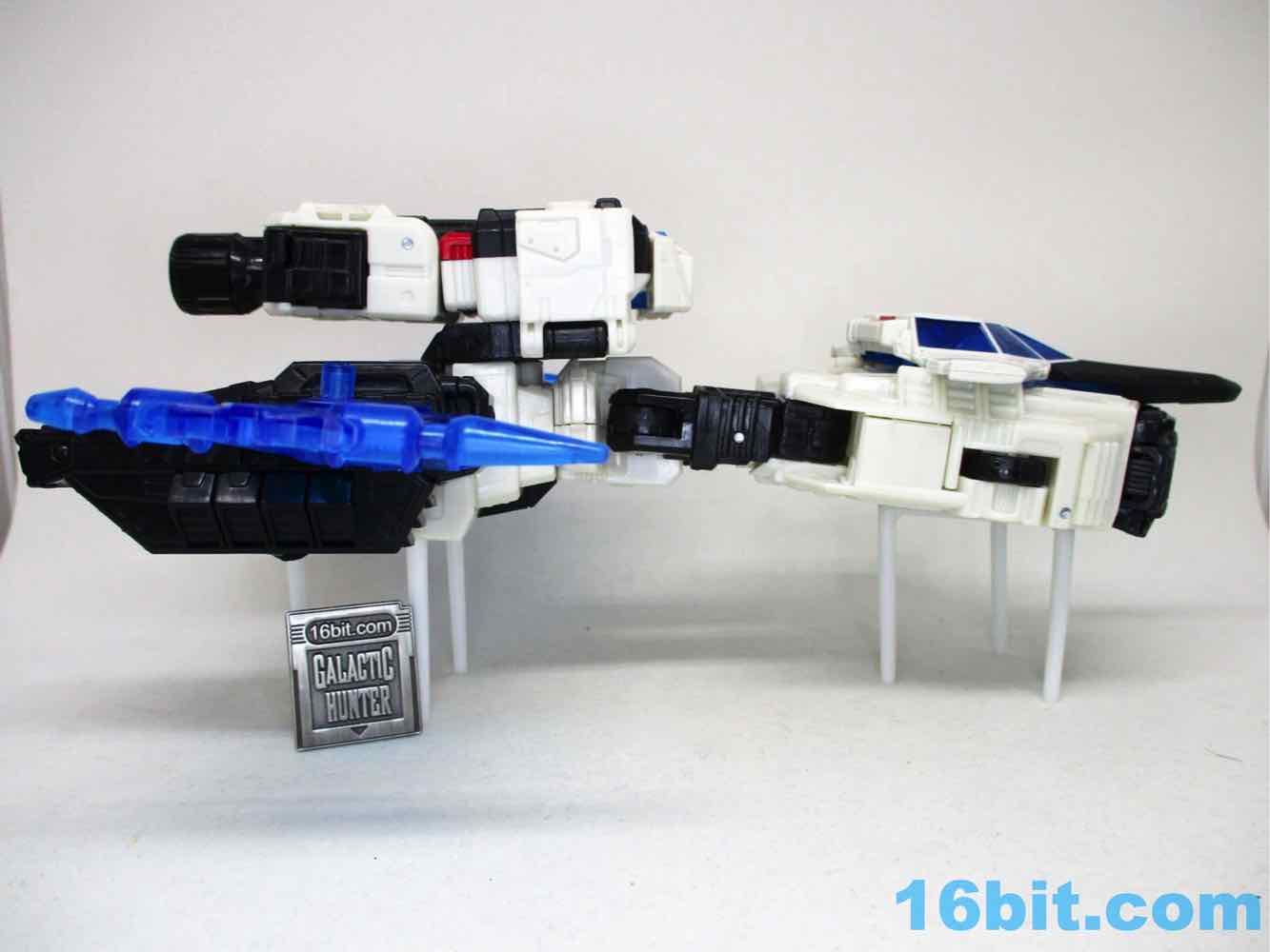Transformation demands instructions because the alternate space ship mode is bizarre. The toy is still the same as the 2019 Siege tank, just transformed oddly with some extra kibble parts bolted on. There's no specific placement for the sword, but his wing pieces plug in the sides and you put a fake cockpit on there. Retooled legs may have looked better, but budgeting is real. The clear sprue parts are a clever way to work around tooling (and retooling) budgets, and may inspire fans to make their own add-on parts for mistransformed figures. Future Sixshot-style toys could be enabled by this.