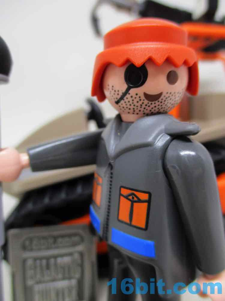 In the last nearly five decades, Playmobil figures range from perfectly nice to astonishing figures you'll probably never want to part with - and some are really boring. This one feels like Playmobil tried to come up with an action figure, with a torso featuring sculpted coat elements like a collar and a zipper seam rather than merely printing them on a flat, generic torso mold. It looks a lot better, but it's also very much not the way Playmobil tended to do things. It also has a holster for the included pistol, and a unique piece of gear for his head that has a microphone so he can talk to his teammates. If that weren't enough, he's got eye patch and stubble - that basically makes him a modern pirate! He also sports orange pockets on his shirt and pants, giving him a bit more of a distinctive look than "jungle pirate Conan O'Brien."