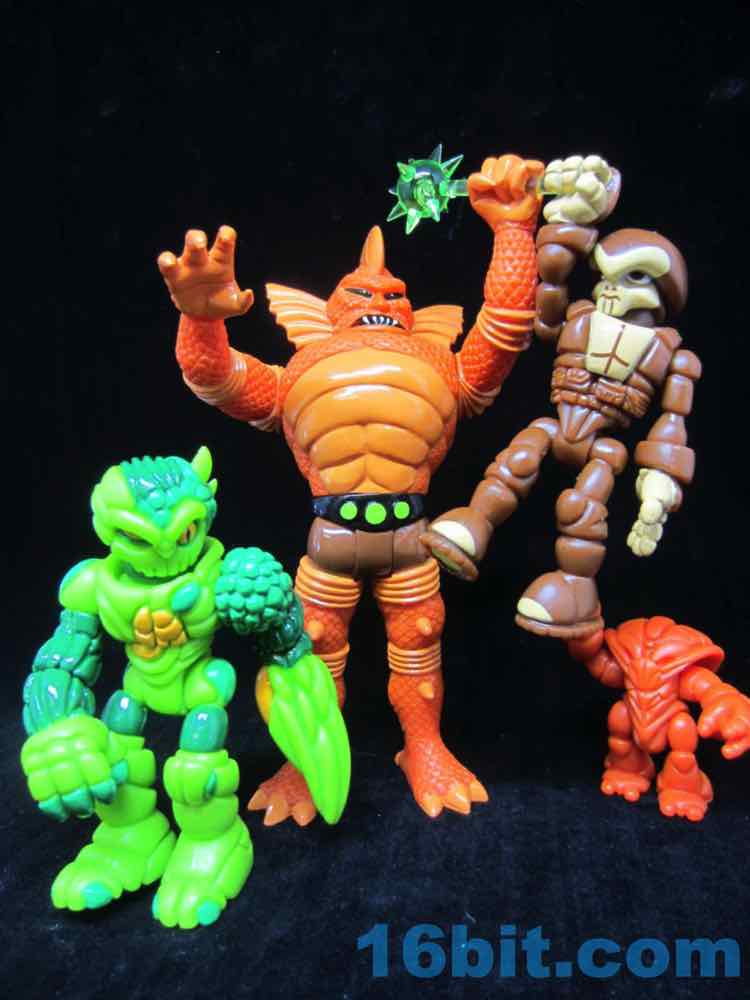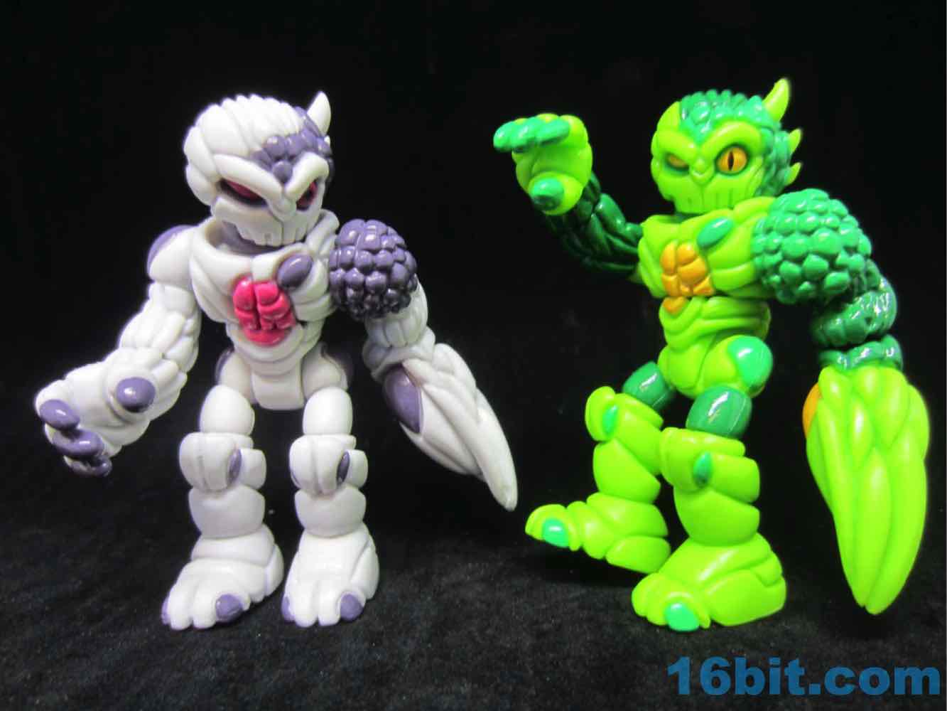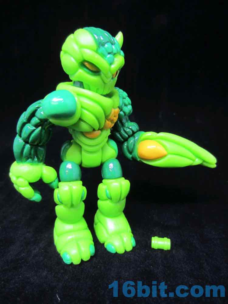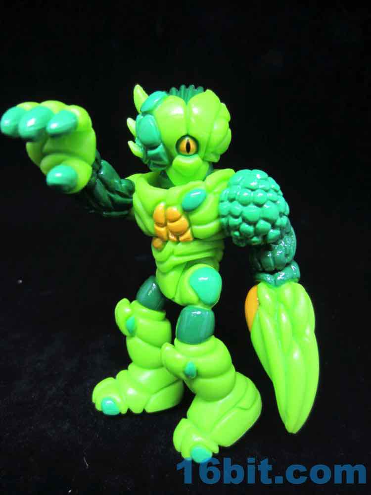 Cast in green, this lumpy little looker was given two shades of green paint as well as some yellow and black highlights. With 12 points of articulation, his build is pretty similar to Pheyden - swivel wrists, swivel ankles and knees, rotating shoulders and hips, and so on. The head and waist turn nicely, too. The figure is sized to fit with your other Onell Design things, but also Playmobil and Imaginext figures.