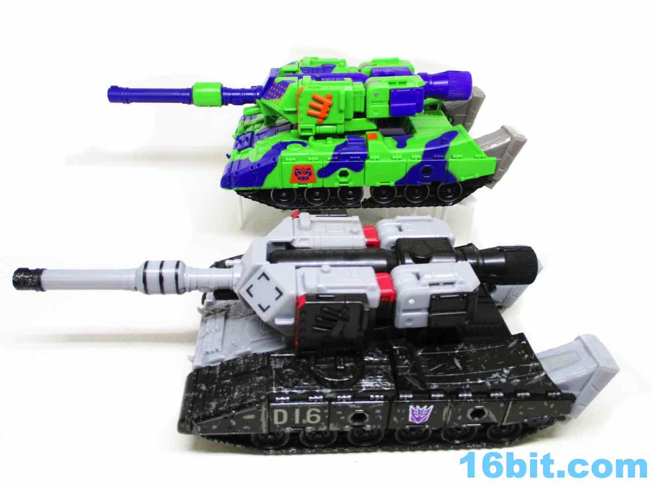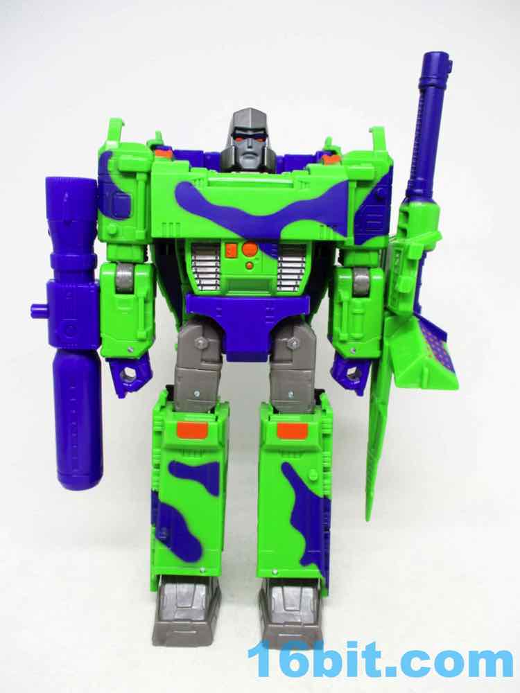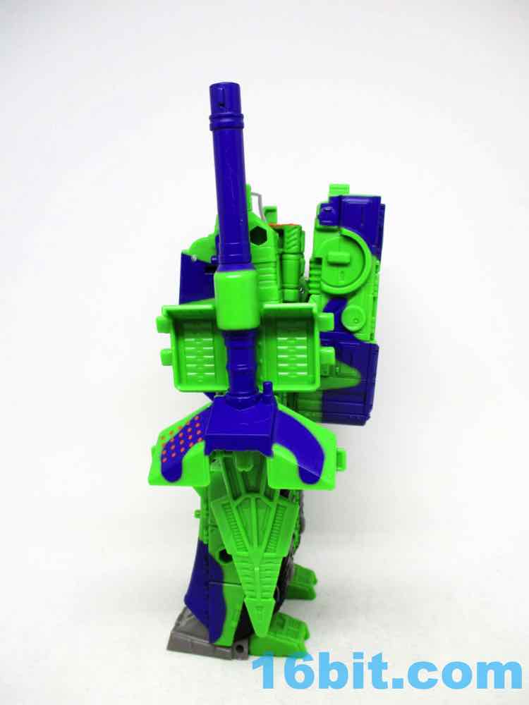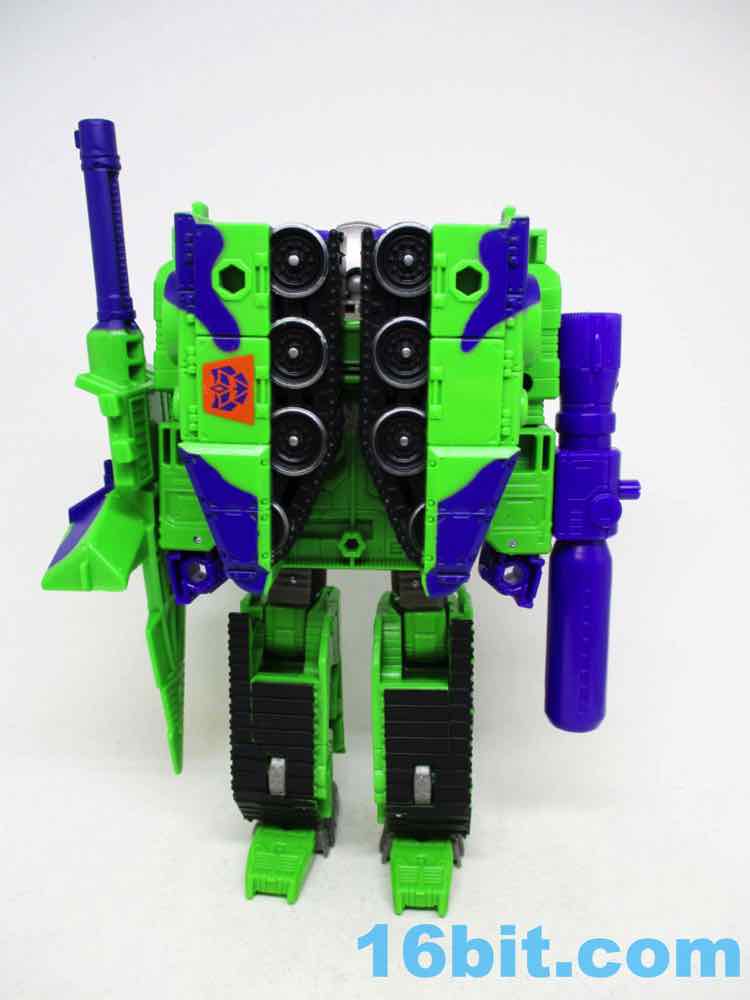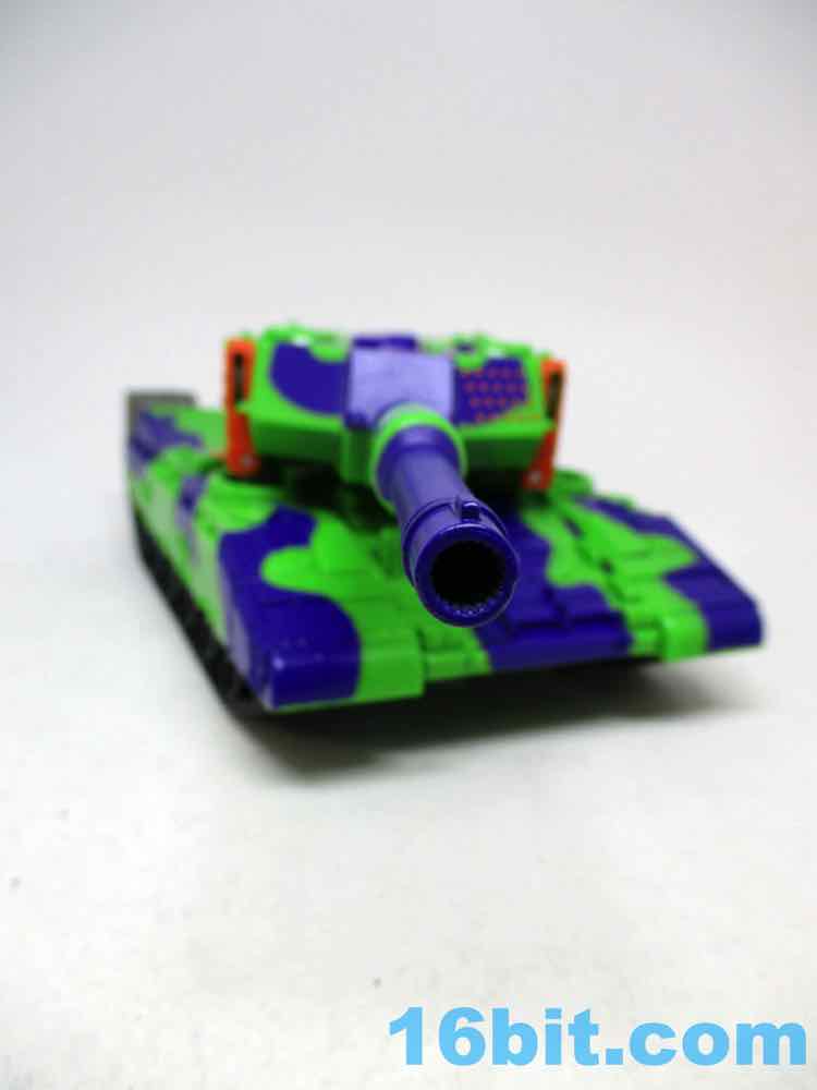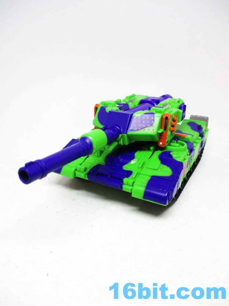 Provided you don't have the original, it's a fine substitute - until they do another one, which undoubtedly also be pretty great. I would have loved a G2 Decepticon symbol - or something - visible in robot mode, but a nicely articulated green robot is what you would and should expect from a toy like this. Some more orange would be nice, but again, I'm picking at nits here - what you get is a perfectly good repaint, with some attempt to recreate the original toy's shoulder cannon using the tank turret. It's clever but doesn't work as good as I might have hoped - thank goodness for the original-style fusion cannon!