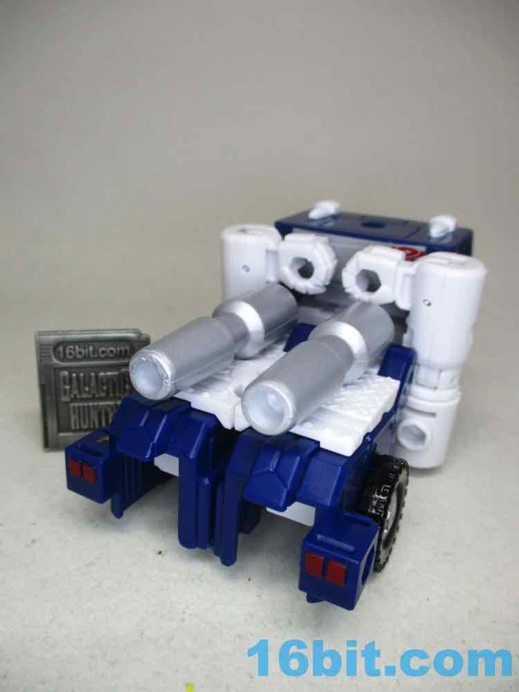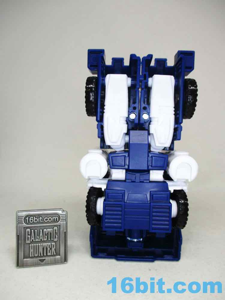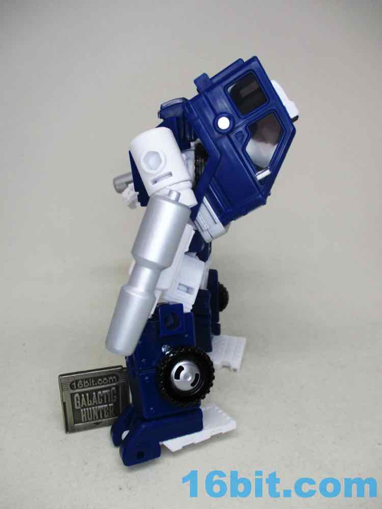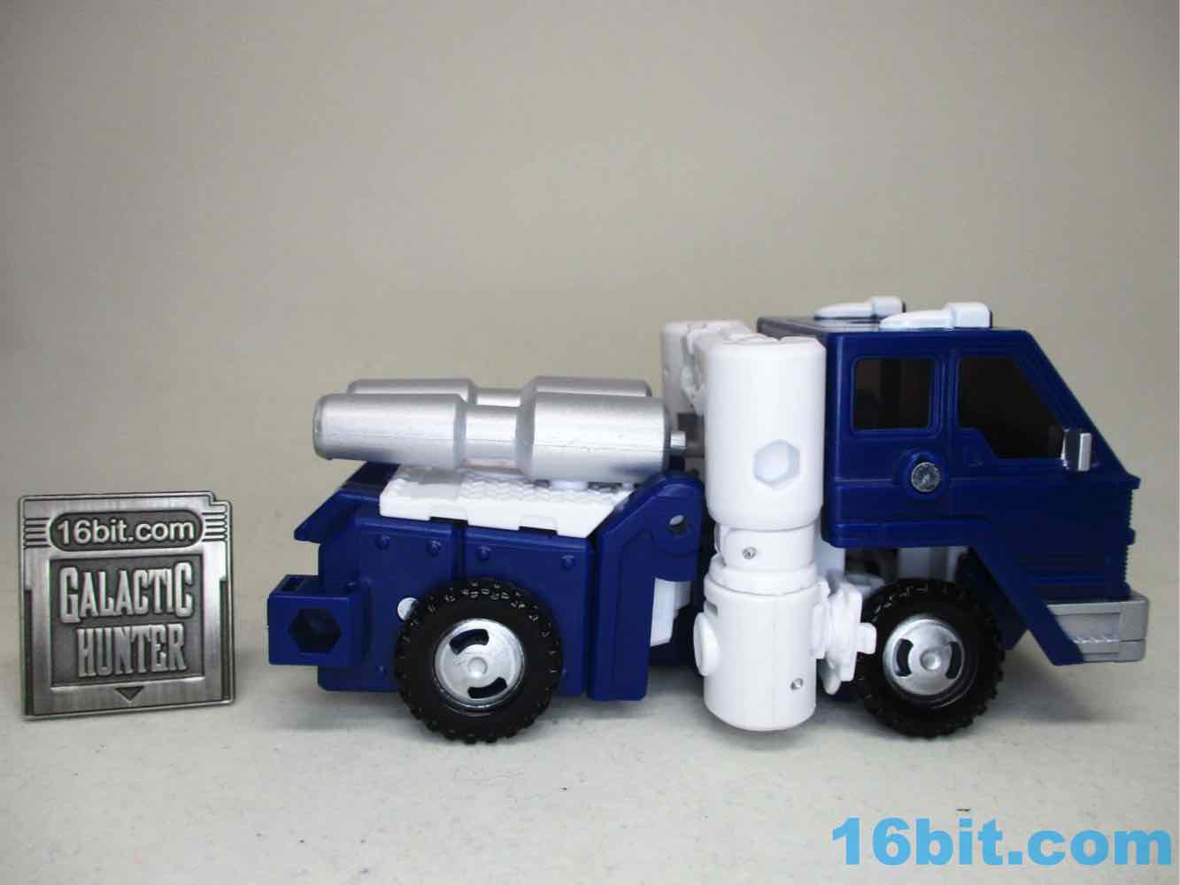 What you're getting is neither a perfect comic, cartoon, nor toy Pipes - but it's a good representation of the idea of him. With blue optics, he doesn't quite match the red of the cartoon or the toy, but it's consistent with most Autobots. The white arms don't seem to match the mostly-silver interpretations we've seen in the past, but at least the dark blue looks good. And you get silver cannons on his arms. Oh, and the 4 1/2-inch robot has 19 meaningful points of articulation plus other moving parts relevant to the transformation. It's pretty good. I'd love to say it's enough to make most fans happy, but there's a market for "gap fillers" that fill in hollow spots on these toys that can cost as much as the actual toy. Clearly, fans are never happy.