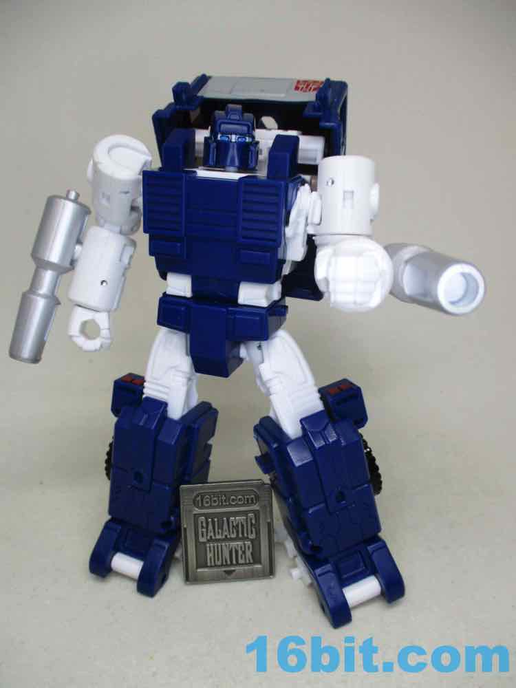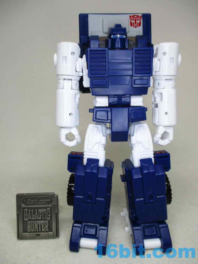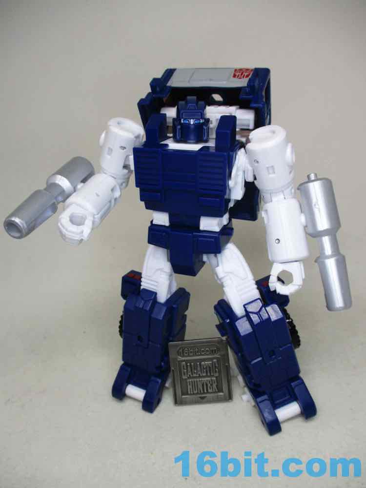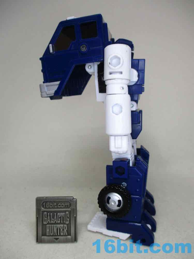 What you're getting is neither a perfect comic, cartoon, nor toy Pipes - but it's a good representation of the idea of him. With blue optics, he doesn't quite match the red of the cartoon or the toy, but it's consistent with most Autobots. The white arms don't seem to match the mostly-silver interpretations we've seen in the past, but at least the dark blue looks good. And you get silver cannons on his arms. Oh, and the 4 1/2-inch robot has 19 meaningful points of articulation plus other moving parts relevant to the transformation. It's pretty good. I'd love to say it's enough to make most fans happy, but there's a market for "gap fillers" that fill in hollow spots on these toys that can cost as much as the actual toy. Clearly, fans are never happy.