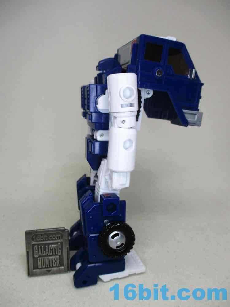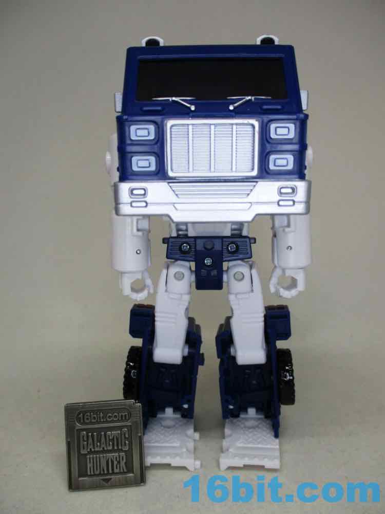 Transformation is a snap - you may not need the instructions! Everything twists and unfolds in a logical pattern that yields you a brick truck, with decent rolling wheels and white smoke stacks. There are a lot of places to connect weapons and Optimus Prime's container trailer, so if you collect this stuff the toy is a worthwhile addition to a toy box. It gets better with the more things you have around.