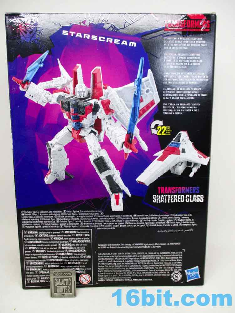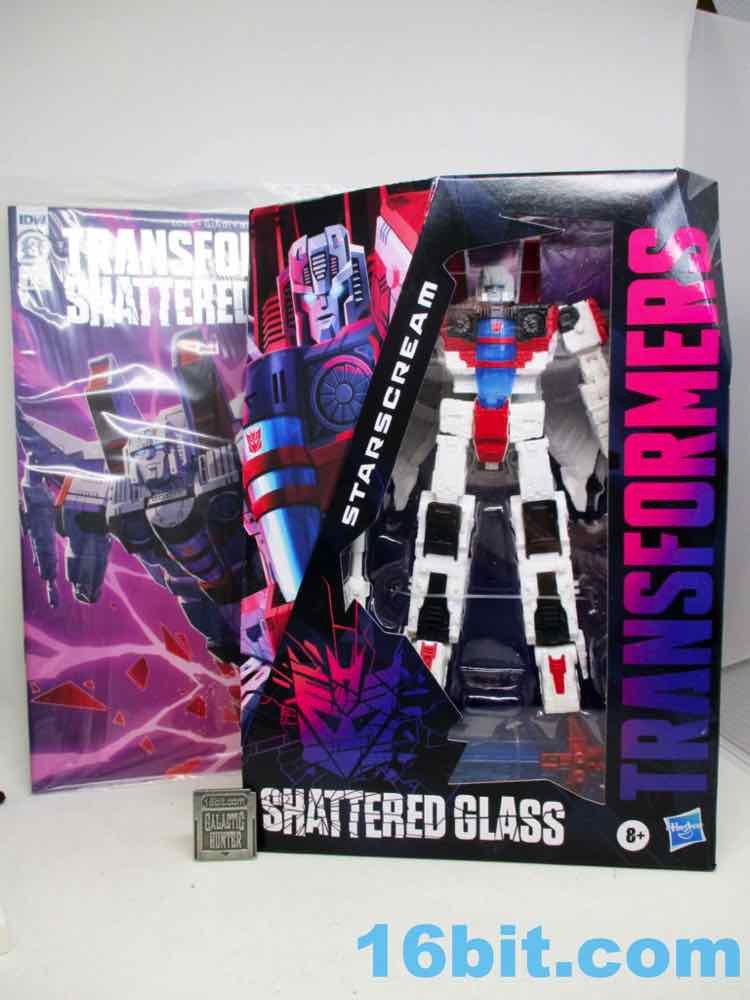 Previously a BotCon exclusive, Shattered Glass "Heroic Decepticon" Starscream which brings us a mold from 2019, but now in Jetfire colors with a nice blue sword. Long-haul fans may remember the Transformers club and convention doing this toy before - twice! - using a Cybertron/Galaxy Force mold the first time and a Combiner Wars mold for the second go-round. He's popular! While not nearly as scuffed as the paint on the SiegeStarscream [FOTD #2,081] mold, it does cost $9 more thanks to a comic book and a bonus weapon. Is it worth the upcharge given Hasbro has sold us this mold nearly a dozen times? Probably, because it's neat, and you'll buy it anyway.