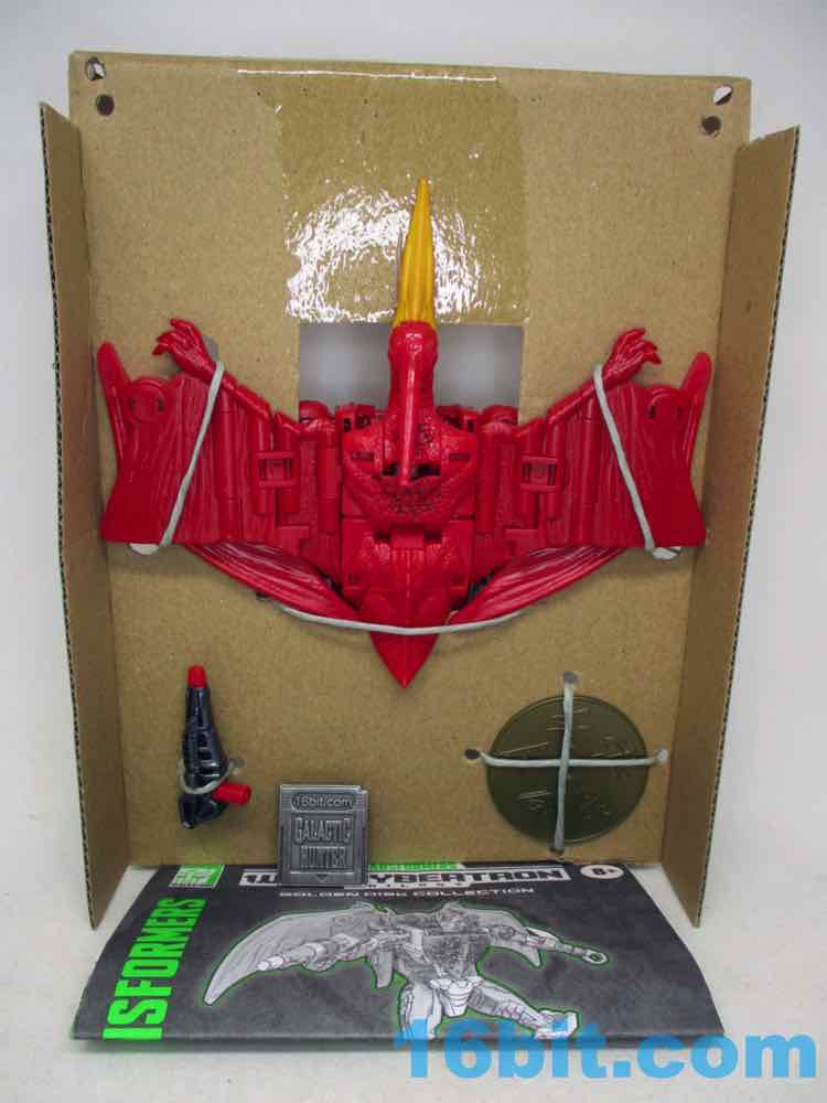 While I have no problem with a new toy of an old character appearing slightly different from the original design, I do have a problem with my sample's wings - the dark thing just pops right off. I wish the connections on those were better. Other than that, the ball-jointed ankle figure stands pretty well and can hold his blaster - if Hasbro never made another Terrorsaur I'd be pretty happy with this one. The Golden Disk accessory is a nice bonus, but he can't actually hold it. As decent robots with good gear goes, this is a nice $23 toy. It's a shame he didn't make it to retail stores, I believe he'd have sold extremely well.