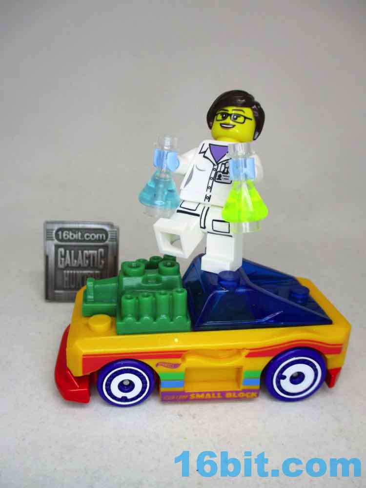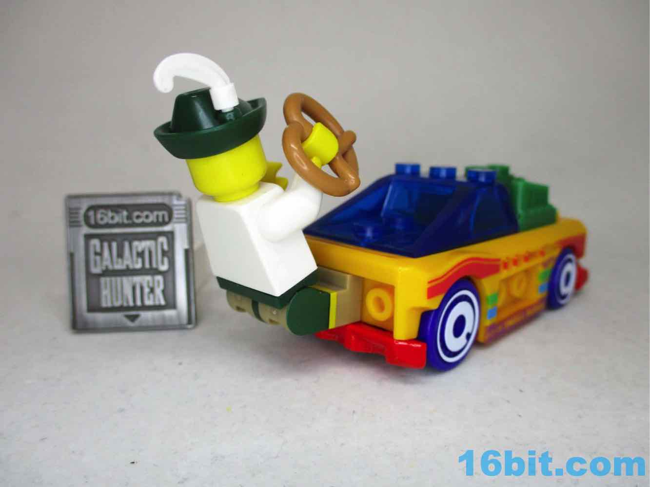 You know how these cars work - they roll nicely and look cool. This one is unique in that it has two studs on each side and three on the back for connecting bricks, figures, or other greeblies. The top of the car has points to connect other pieces, but the green and blue pieces can come off revealing a pretty decent place to connect other builds. If you want to build a dinosaur with roller skates, these would make some pretty nice skates. You could probably make a building and use these cars as wheels to move it around. You could also put small builds on it, and send it on a Hot Wheels race track to its inevitable doom.