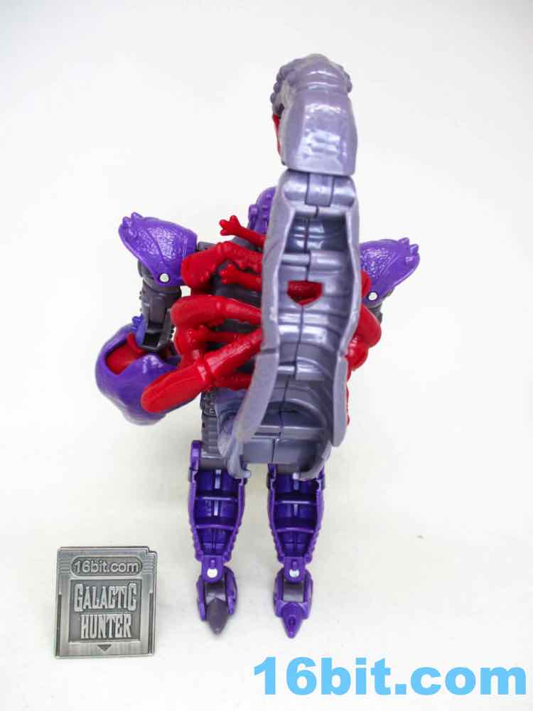 I needed the instructions to transform him, but it wasn't a bad puzzle other than one element. The hands become pincers, the feet go into the tail and body. The scorpion head is tucked in the back - and a bit tricky to pry out. The one thing I didn't like is that the robot chest splits open for transformation and stays open in scorpion mode. It looks weird, and I don't love it. You don't really notice it, but it's awkward.