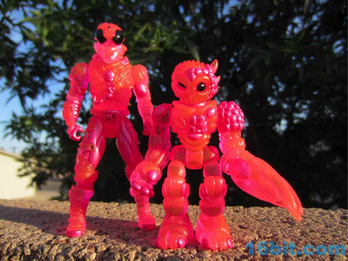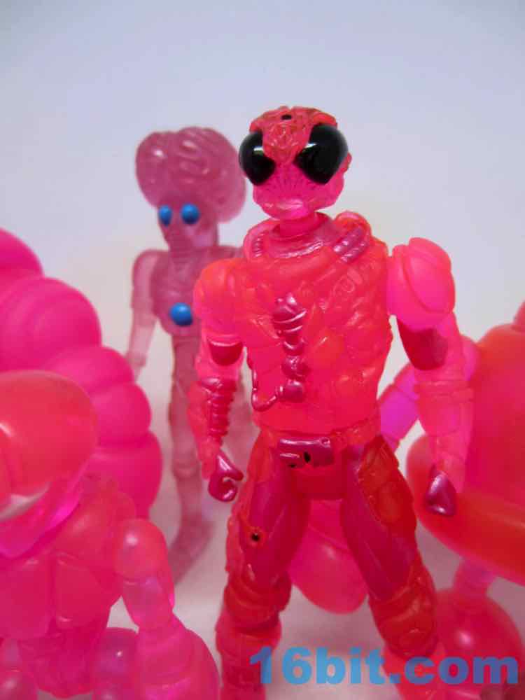 Onell Design (and friends) have done a lot of pink figures over the years, but usually anything labeled "Mordireus" came out looking the hottest. And I mean that - your eyes may melt, it's so good. The Gobon has an extra head in his belly you can see through the clear pink plastic, and it looks a heck of a lot brighter than the other colors. I haven't even mentioned how good the figure is yet - he has swivel joints all over, so he can fit in your old Kenner toys. Sadly the elbows and knees only swivel, so he won't be hanging out in a lot of G.I. Joe or Cobra transports... but odds are unlikely you'd be getting one to do that as it is. His right hand is open for weapons (that you provide, as none were included) and the engineering is great. The figure can stand without flopping over thanks to his boots, there's no real danger in the figure falling over thanks to the solid joints, and you probably won't lose it. Why? Just look at it. It's unlikely this figure won't stand out in any room of your house.