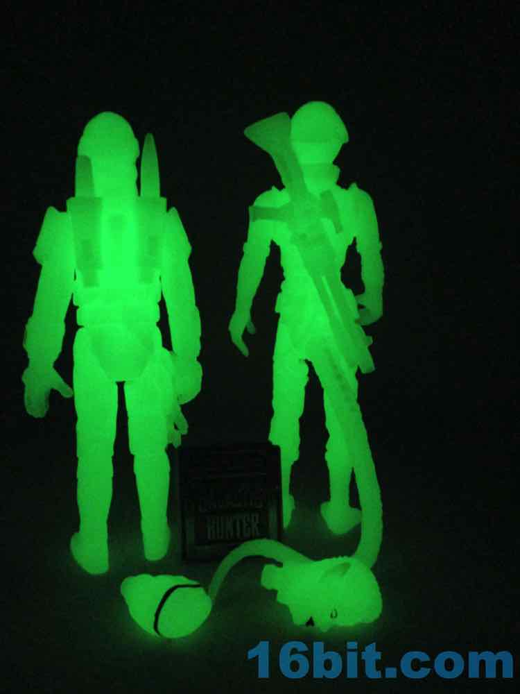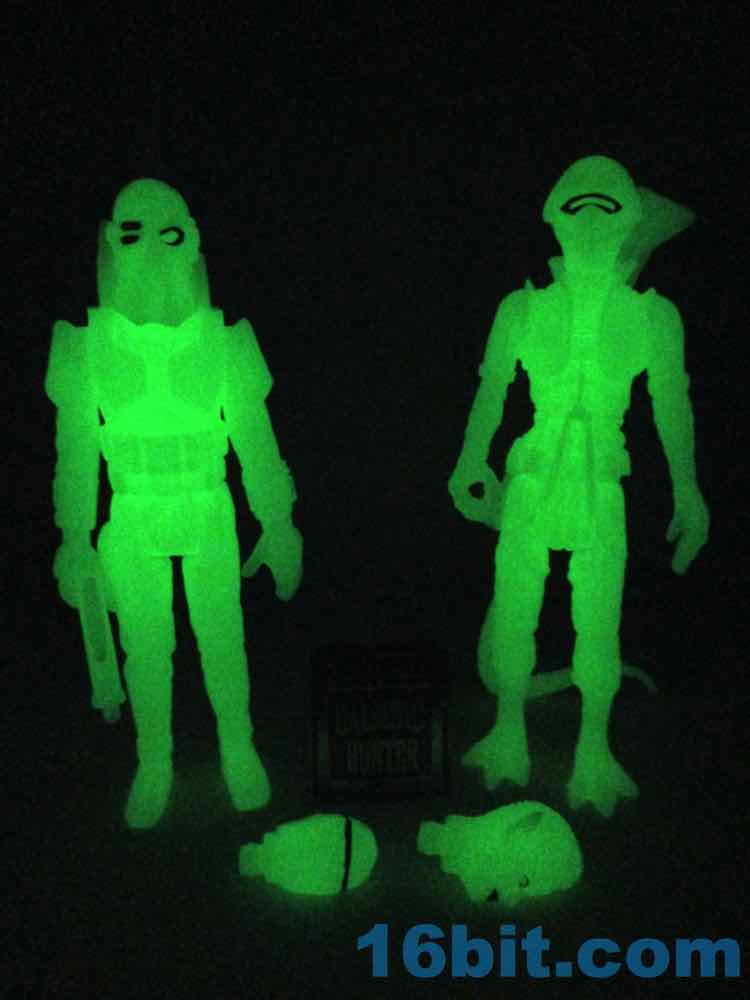 I asked for it! The Assassin (GID) is only the second time I picked up this mold. The 3 3/4-inch scale Glyos-compatible Kenner-inspired indie figure is pretty good, and we've had precious few releases of this alien bounty hunter person. The figure delivers as advertised - the body is bare glow, with some black painted details on the heads. The figure delivers exactly what you'd want at the level of quality I expect from previous releases. It feels as good as a decent mass-production toy at indie pricing, or rather, I don't expect them to break if I play with it. At $20 it's also not very far off from the pricing of a lot of 3 3/4-inch Hasbro figures these days.