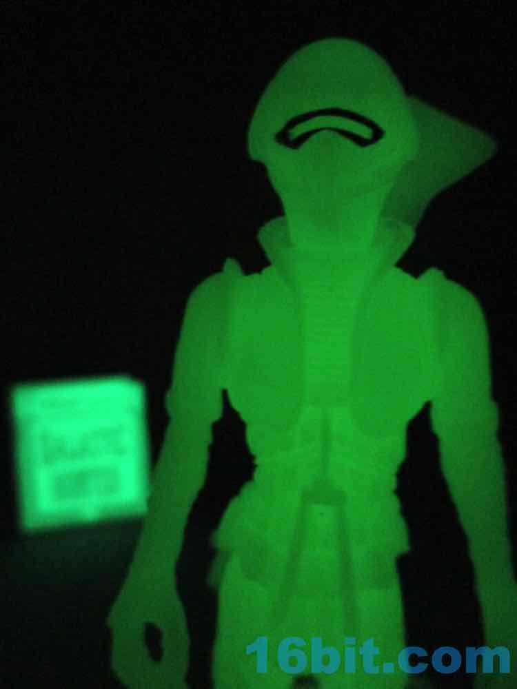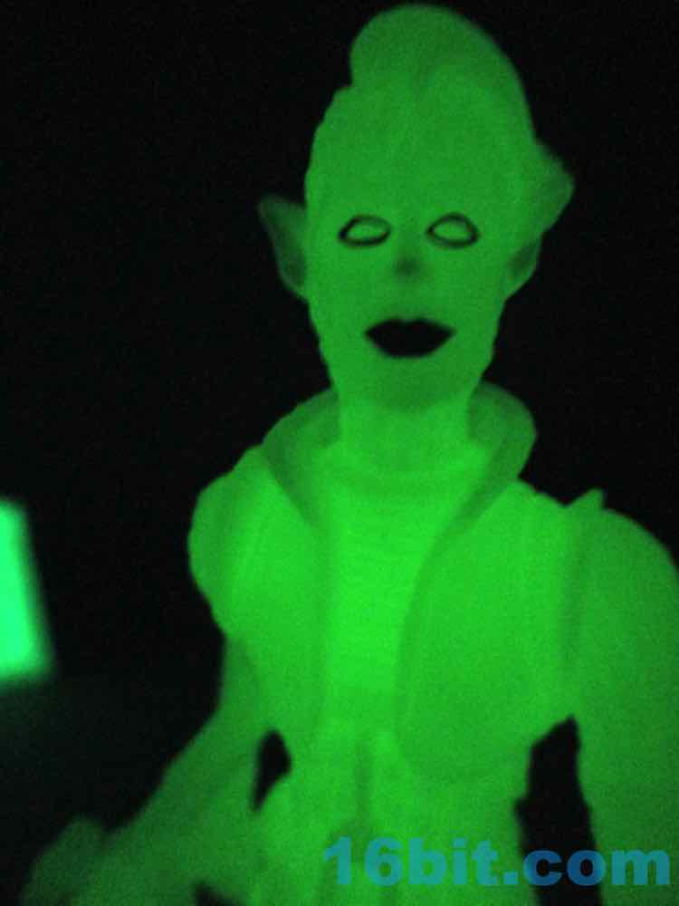 Generally speaking glowing Glyos figures tend to have minimal painted details, often in a light green and/or white. I'd have liked to see some other painted details just to help offset the landmarks of certain costume elements to help make it obvious what I was looking at - like the "Cosmic Radiation The Outer Space Men silver accordion joints - but this still gets the job done.