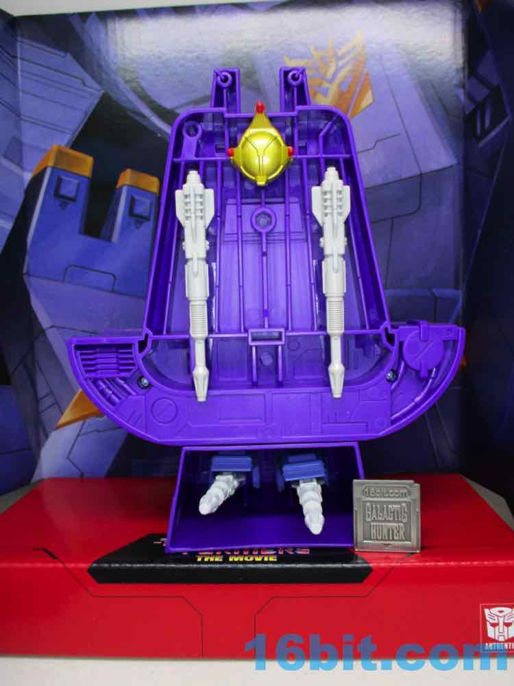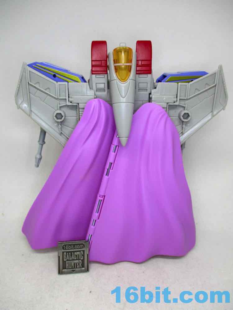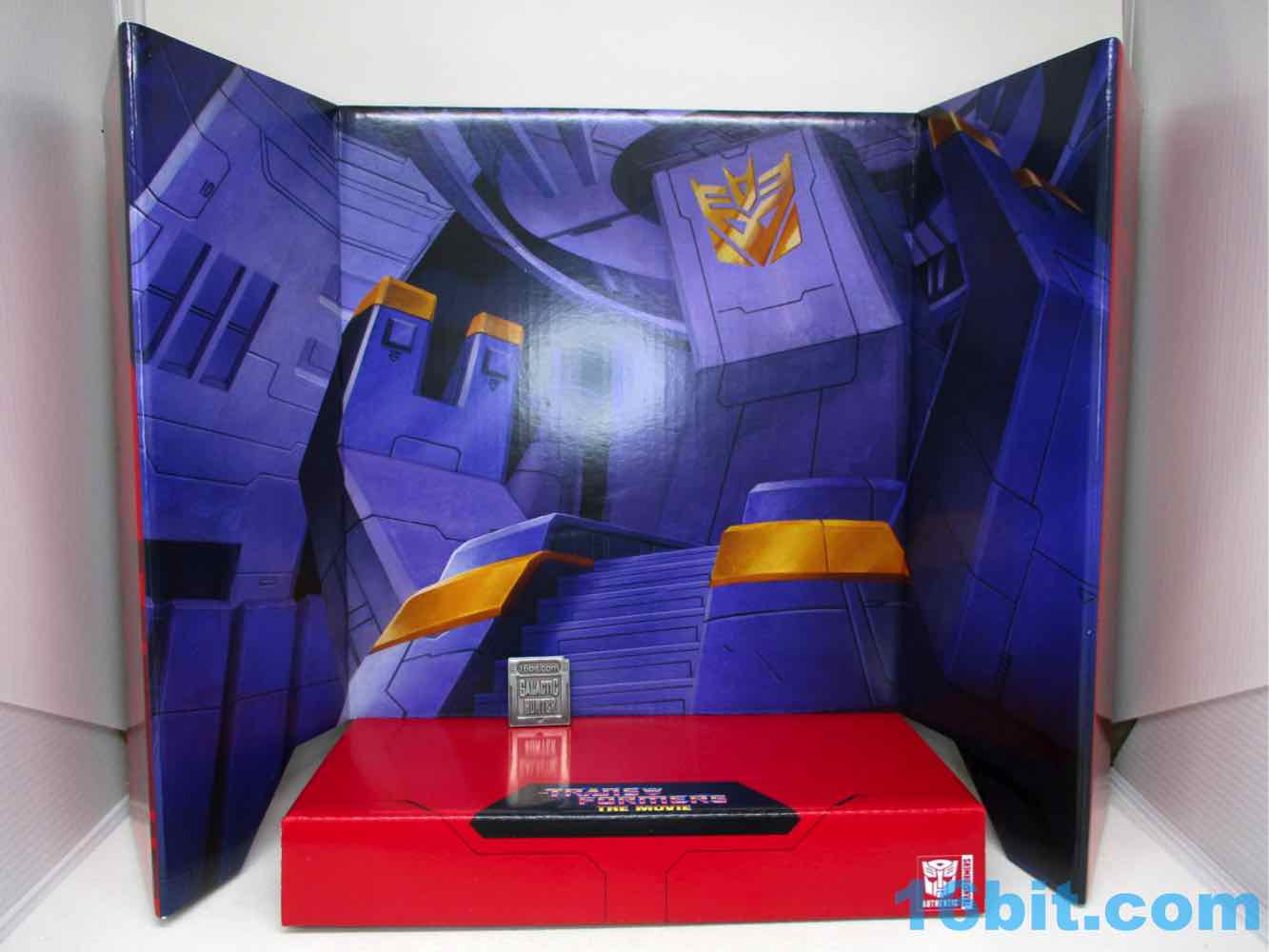 The purple throne itself has no moving parts, and if I'm being fair, it's not great for this figure. Starscream's wing bulk and articulation make it so he kind of crouches and hovers over it, but at least it looks nice. Similarly, Megatron can sit on it, but it's not a perfect fit due to his backpack. It's a nice display piece though, and it's nice to see Hasbro including old cartoon pieces with some of these toys. It also photographs well, and is certainly good enough - but it's not like Hasbro tended to think of these figures as needing to sit in a chair some day. If Hasbro engineered the throne and the figure at the same time, it would be better, but for a post-release solution it's decent. Compared to third-party options, it's fine.