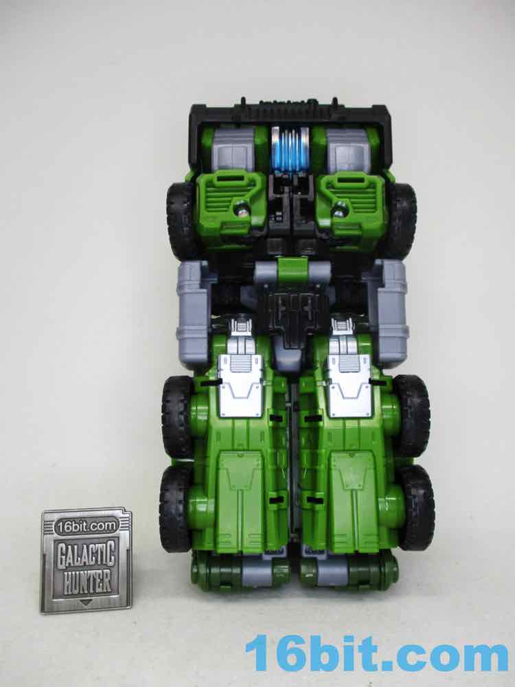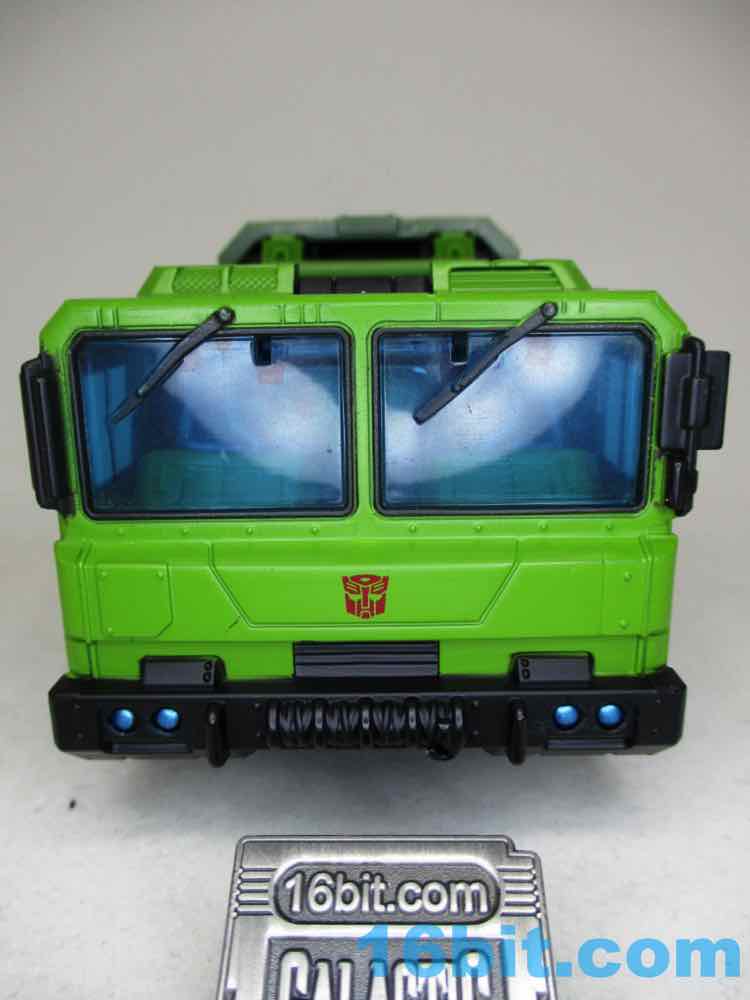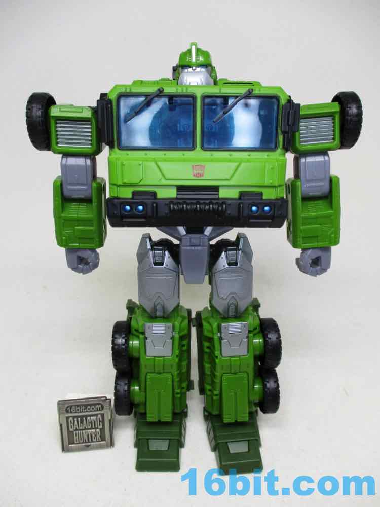 There transformation vexes me. It's way more complicated than it needs to be. We've had a ton of "cab chest hides robot head, legs fold back, arms tuck behind cab" robots over the years. Where someone could have phoned in the transformation, they didn't. The crotch assembly has a lot of twists and unfolding and it's kind of a hassle - I didn't quite grasp it from the instructions, and had to skim two separate videos showing it to grasp what I wasn't grokking. I know some fans disagree, but there's nothing wrong with simplicity. I don't need to explode someone's crotch just to get a truck. (Stop giggling.)